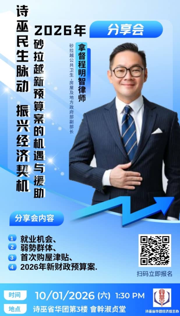 诗巫省华团会长严学德于2026年1月1日发表新年献词,立足华社发展根基,聚焦民生关切与城市未来,为新一年的前行校准方向、凝聚力量。