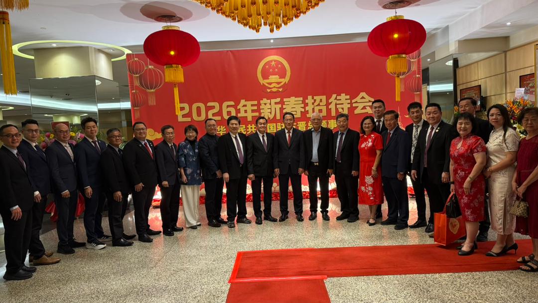中国驻古晋总领事馆于2026年1月29日(星期四)晚上7时在古晋帝宫酒店帝宫厅隆重举办2026年新春招待会,现场气氛喜庆洋洋。众高管显要及华社领袖齐聚一堂,诗巫省华团理事亦受邀出席与中国驻古晋总理事邢伟平阁下一同欢聚贺年,共庆新春佳节。
