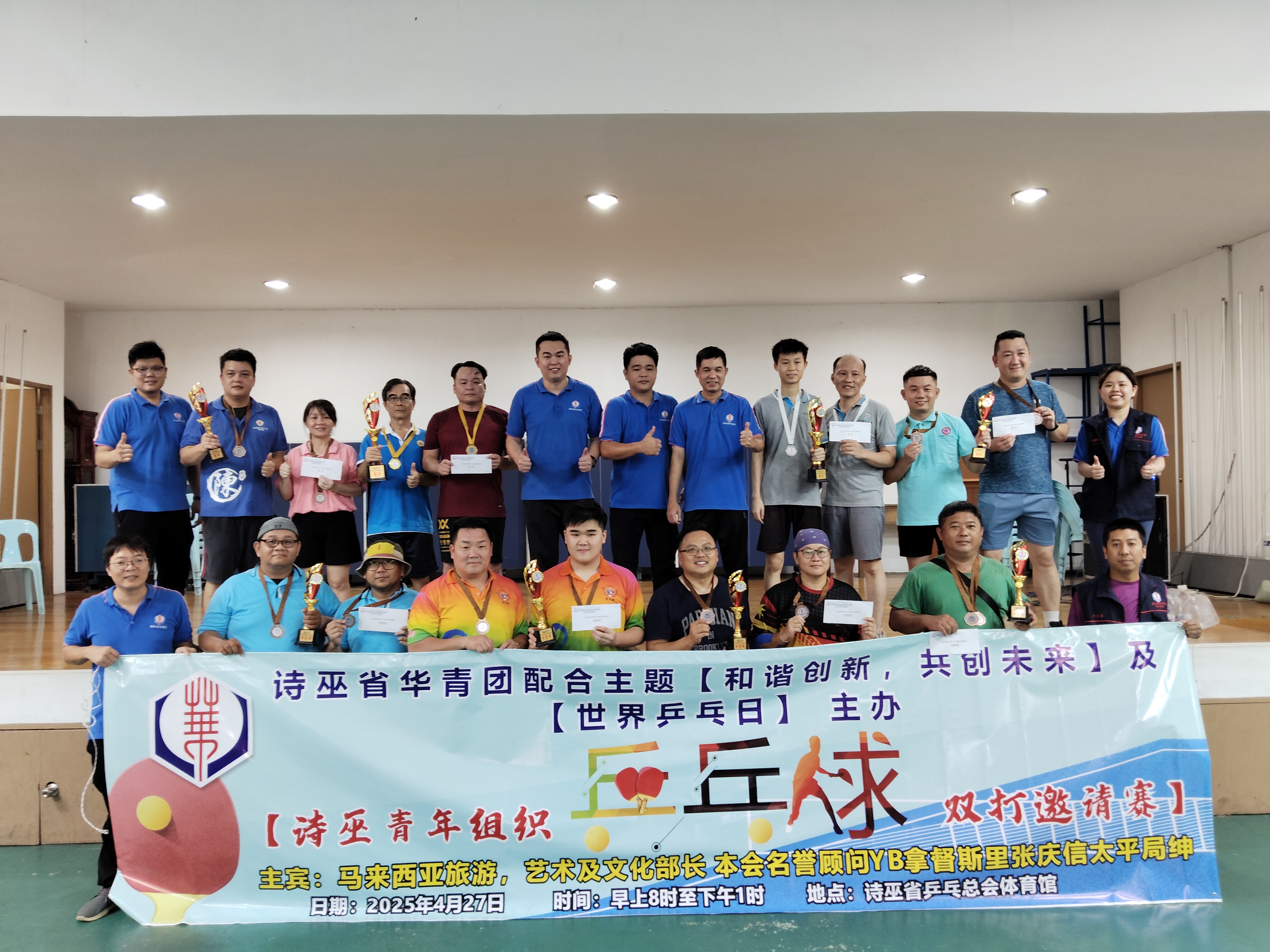 配合“和谐创新,共创未来”的主题以及“世界乒乓日”,诗巫省华青团举办的“诗巫青年组织乒乓球双打邀请赛”,于2025年4月27日(星期日)早上8时,在诗巫省乒乓总会体育馆顺利举行。本次邀请赛主宾为本会名誉顾问暨马来西亚旅游丶艺术及文化部长 拿督斯里张庆信太平局绅。