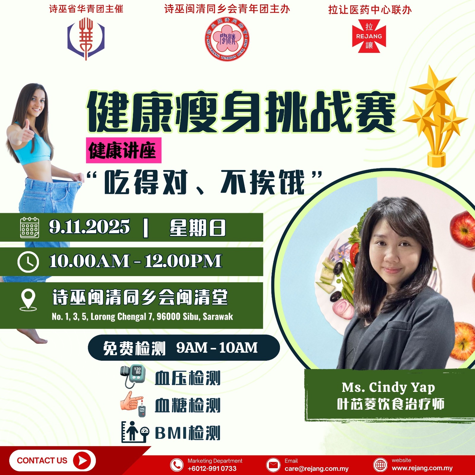 初始体重:2025年11月9日(星期日)早上9时,在诗巫闽清同乡会闽清堂,现场还有免费血压、血糖、BMI检测