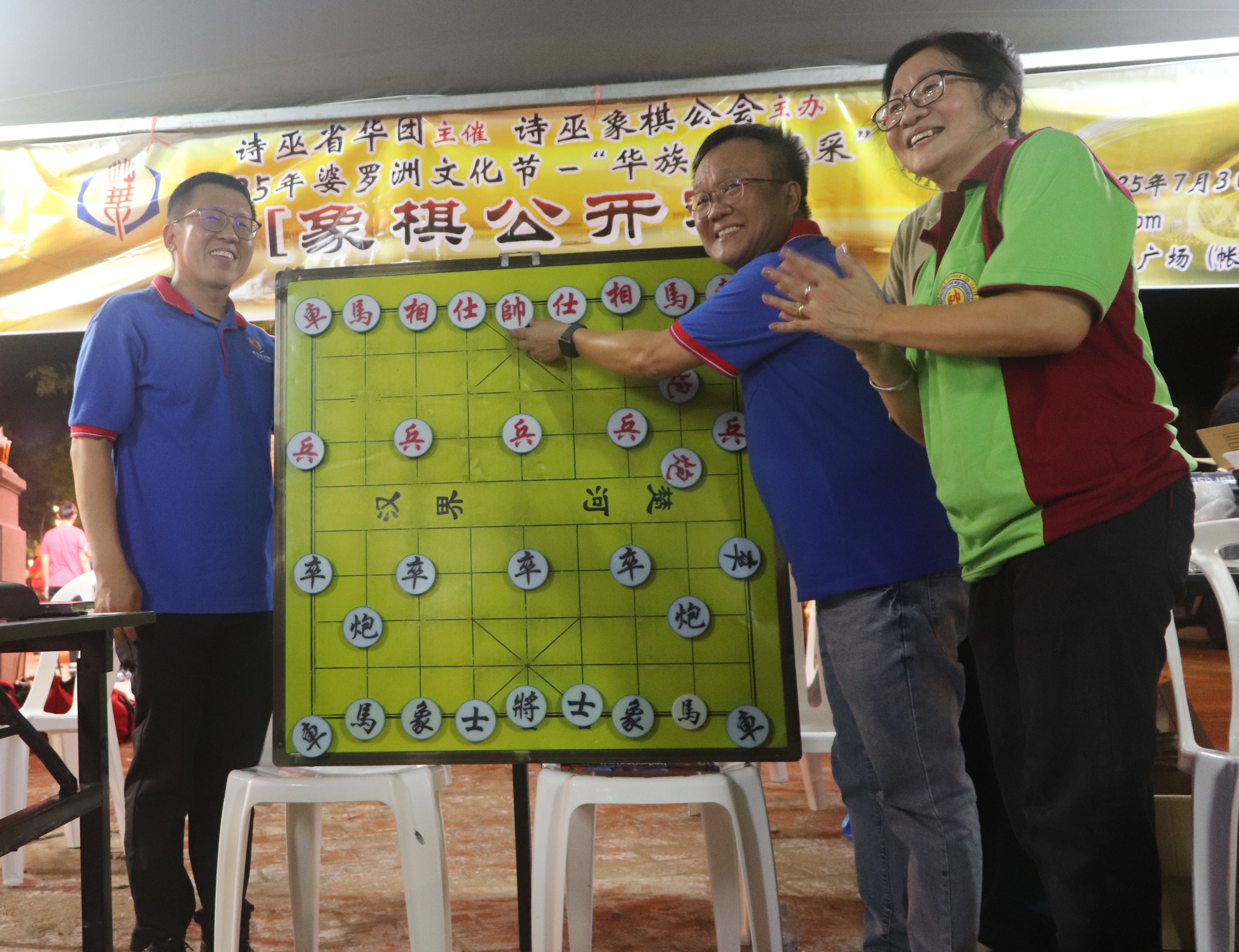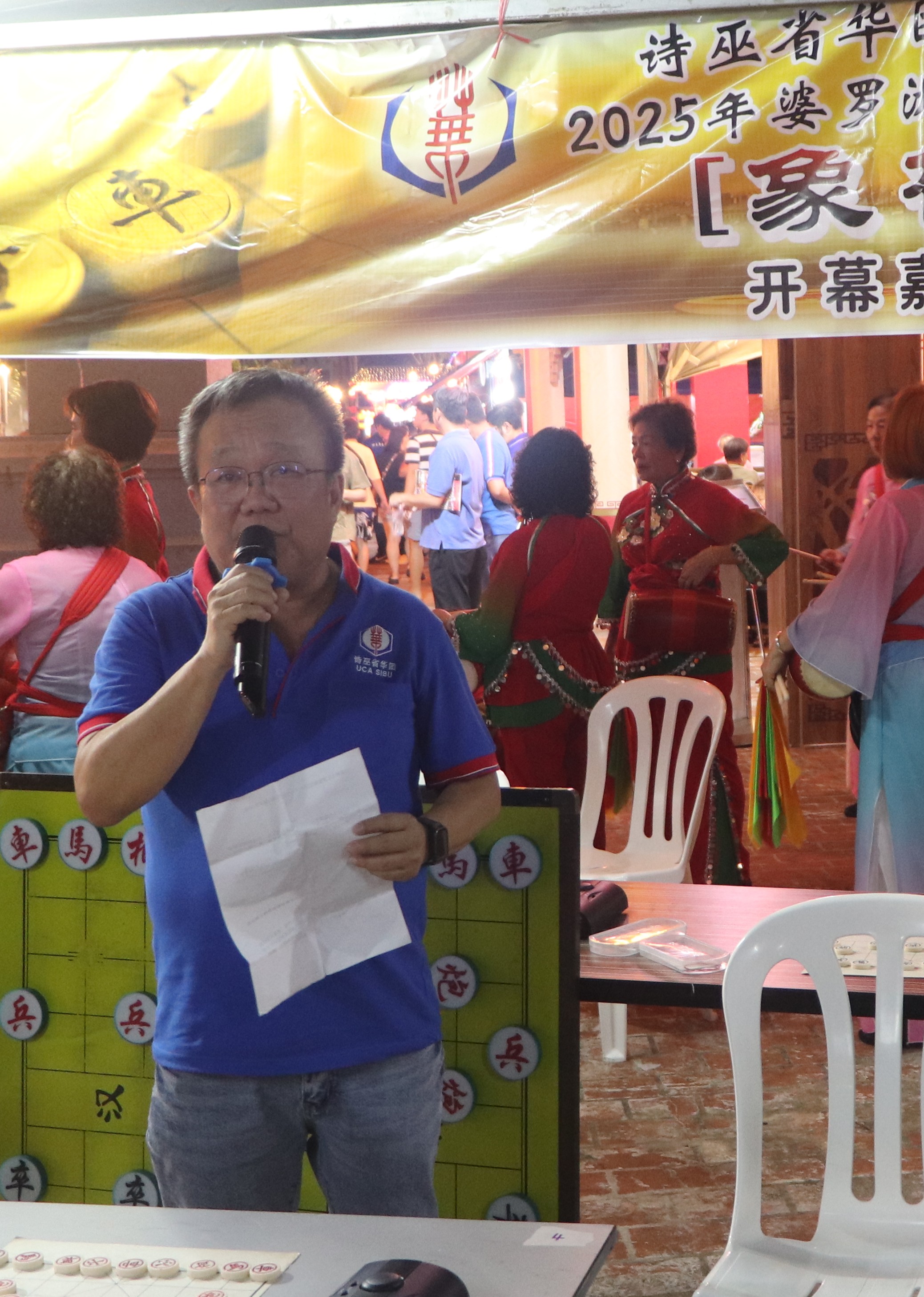 诗巫象棋公会在每届婆罗洲文化节皆举办象棋公开赛,本届也不例外地在文化节于文化广场登场。而该会也特邀请诗巫省华团财政兼2025年婆罗洲文化节文化街街长 许忠全担任主宾为这项比赛主持挂帅仪式,象徵象棋公开赛顺利展开!
