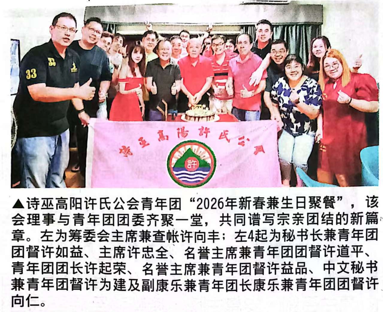 诗巫高阳许氏公会日前举办“2026年新春兼生日聚餐” 该会理事与青年团团委齐聚一堂,通过交流、游戏与欢歌,共同谱写宗亲团结的新篇章。