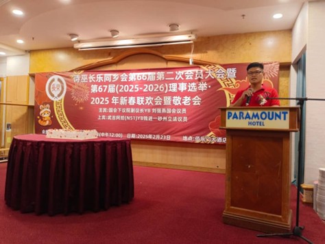 诗巫长乐同乡会第六十七届理事(2025-2026)阵容: 诗巫长乐同乡会第十三届妇女组(2025-2026)阵容: 詩巫长樂同乡会第三届(2025-2026)青年团陣容: 2025会员大会 会议开始。左起:财政陈家祥、秘书刘素燕、主席陈诗强、副主席陈华钦、团长陈国华、 主任陈亨莹 2025年新春暨敬老会 筹备会主席陈加融致词 大会主席陈诗强 上宾 YB钱进一立法议员致词 主宾 马来西亚国会下议院副议长兼诗巫南兰区国会议员刘强燕(代表)致词 颁发小孩红包合影 理事、青年团与妇女组一起合唱《财神到》 2025年清明公祭第六十七届(2025-2026)阵容