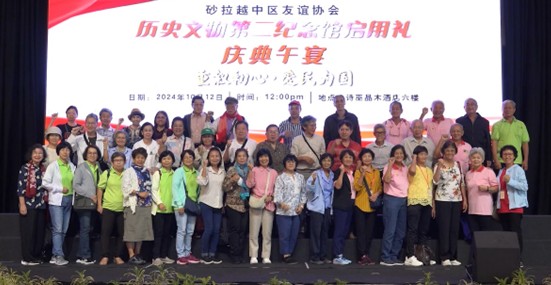 中秋节 10·12历史文物第二纪念馆启用礼 雪隆团(部分)合影 新加坡老友联谊会代表何进发(中)赠送纪念品,由总筹备会主席吴松花(左)、大会主席张锦兴(右)接收 互赠礼物环节 砂拉越南区友谊俱乐部团队 美里、马来亚、古晋老友合影 砂拉越华人学术研究会代表李海丰2024年活动
