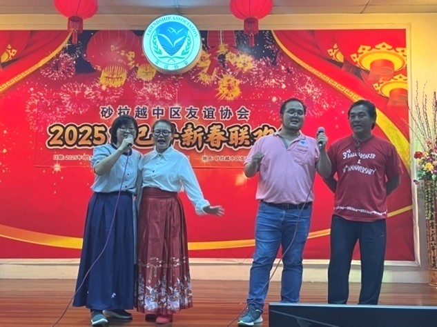 【2025新春】 卢武盛:放炮囖! 老友们在有序领取食物 来宾们领取友谊丛书 黄仕旺独唱 黎芷廷演唱《送你一个大年糕》 刘乃逖独唱 黎承谒演唱《新年颂》 青年团合唱 舞蹈组呈献的舞蹈《千古一醉》 歌唱组的大合唱《恭喜你,祝福你》、《最亲的人》 张晓君主持问答节目 舞蹈组呈献舞蹈《娥嫚》2025年活动