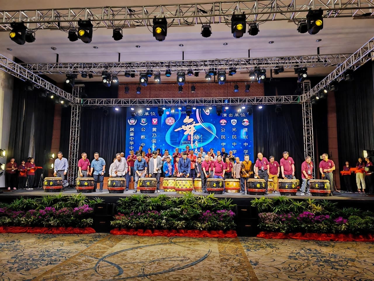 众嘉宾为“2023年中华民族舞蹈大汇演:弘扬华教·舞动青春”主持击鼓开幕仪式。