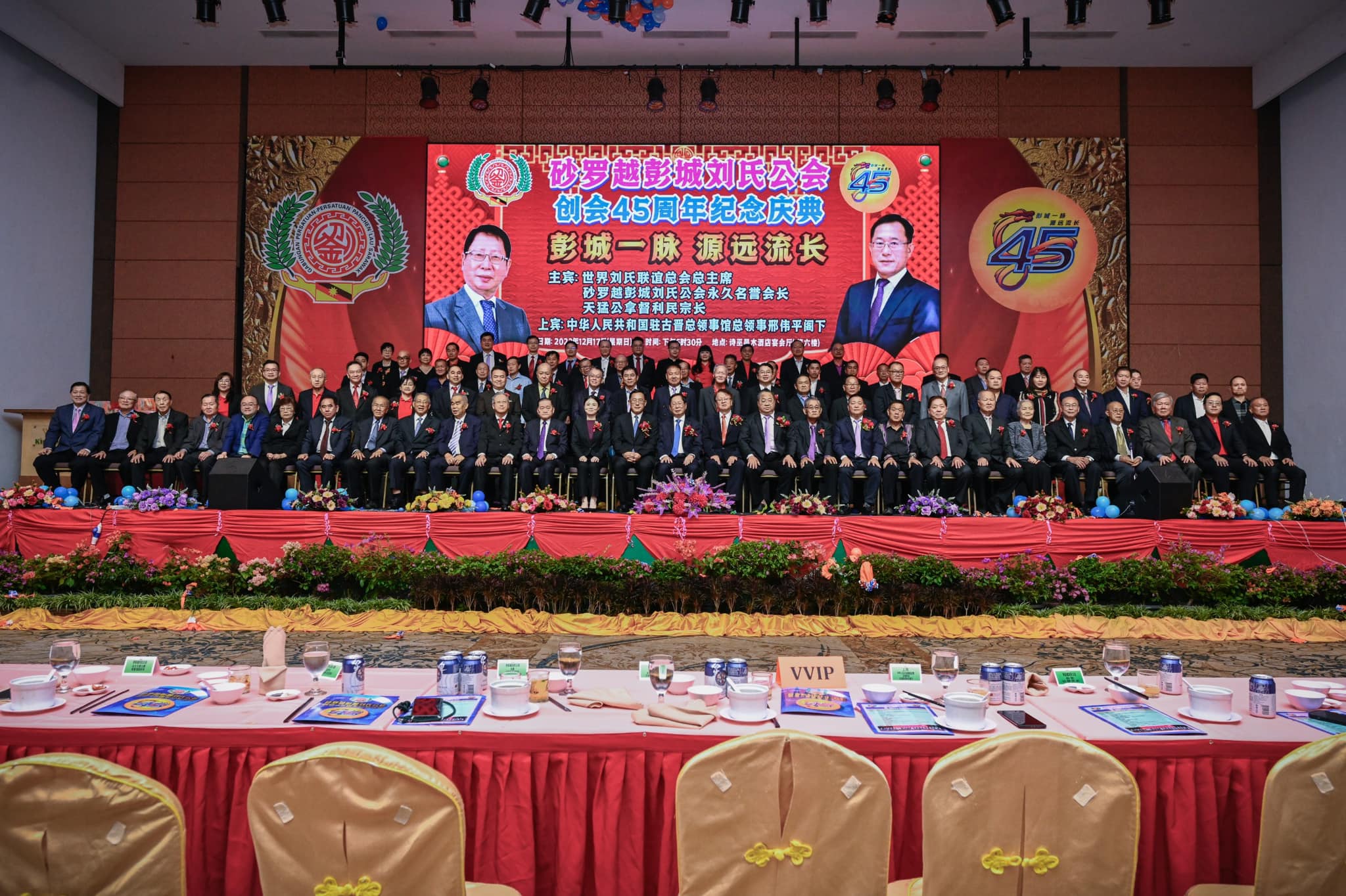 砂拉越彭城刘氏公会创会45周年纪念庆典晚宴,于12月17日(星期日)傍晚6时30分,在诗巫晶木酒店六楼宴会厅盛大举行。