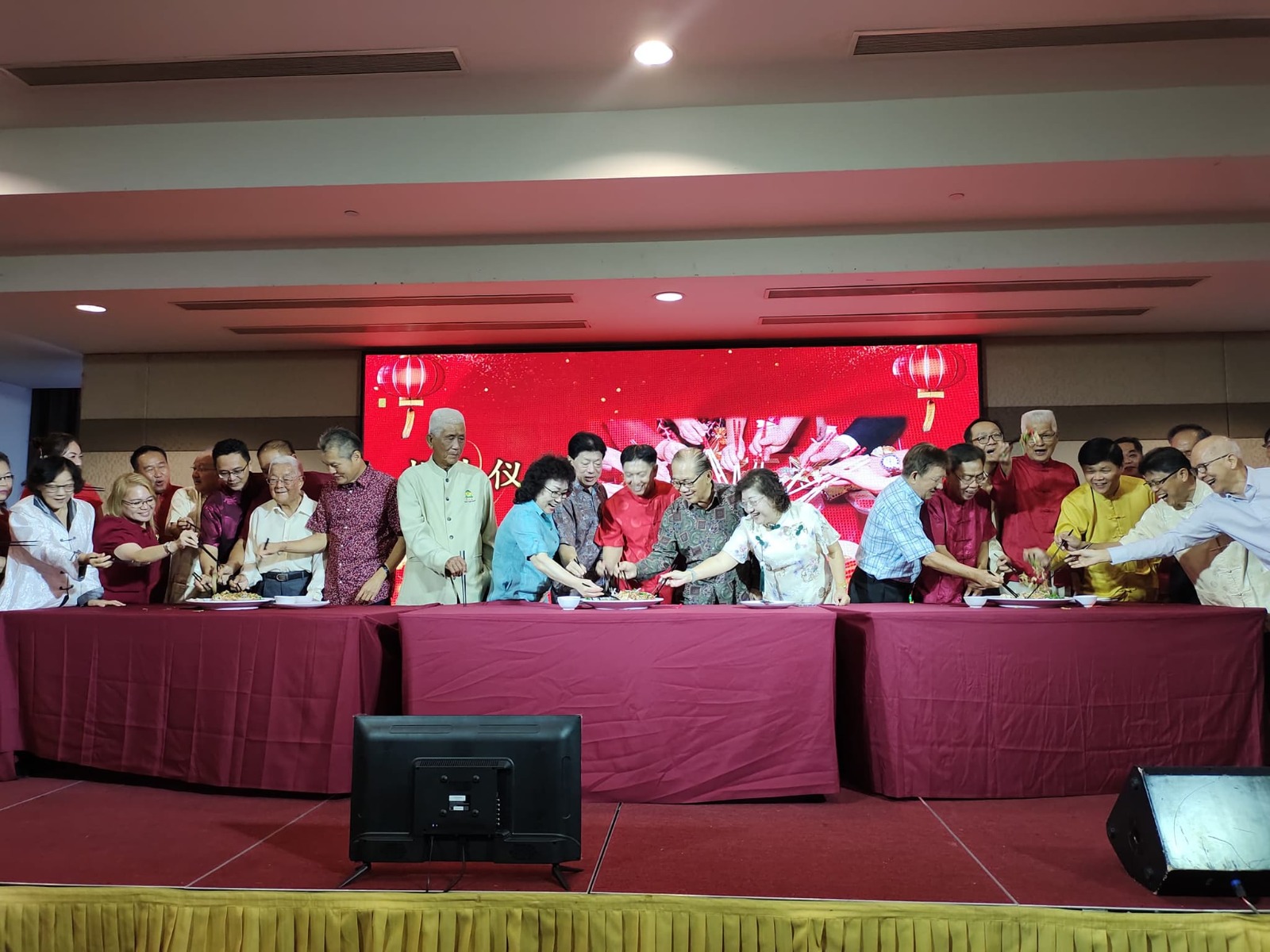 众嘉宾齐捞生,寓意来年风生水起,诗巫漳泉公会会务蒸蒸日上。