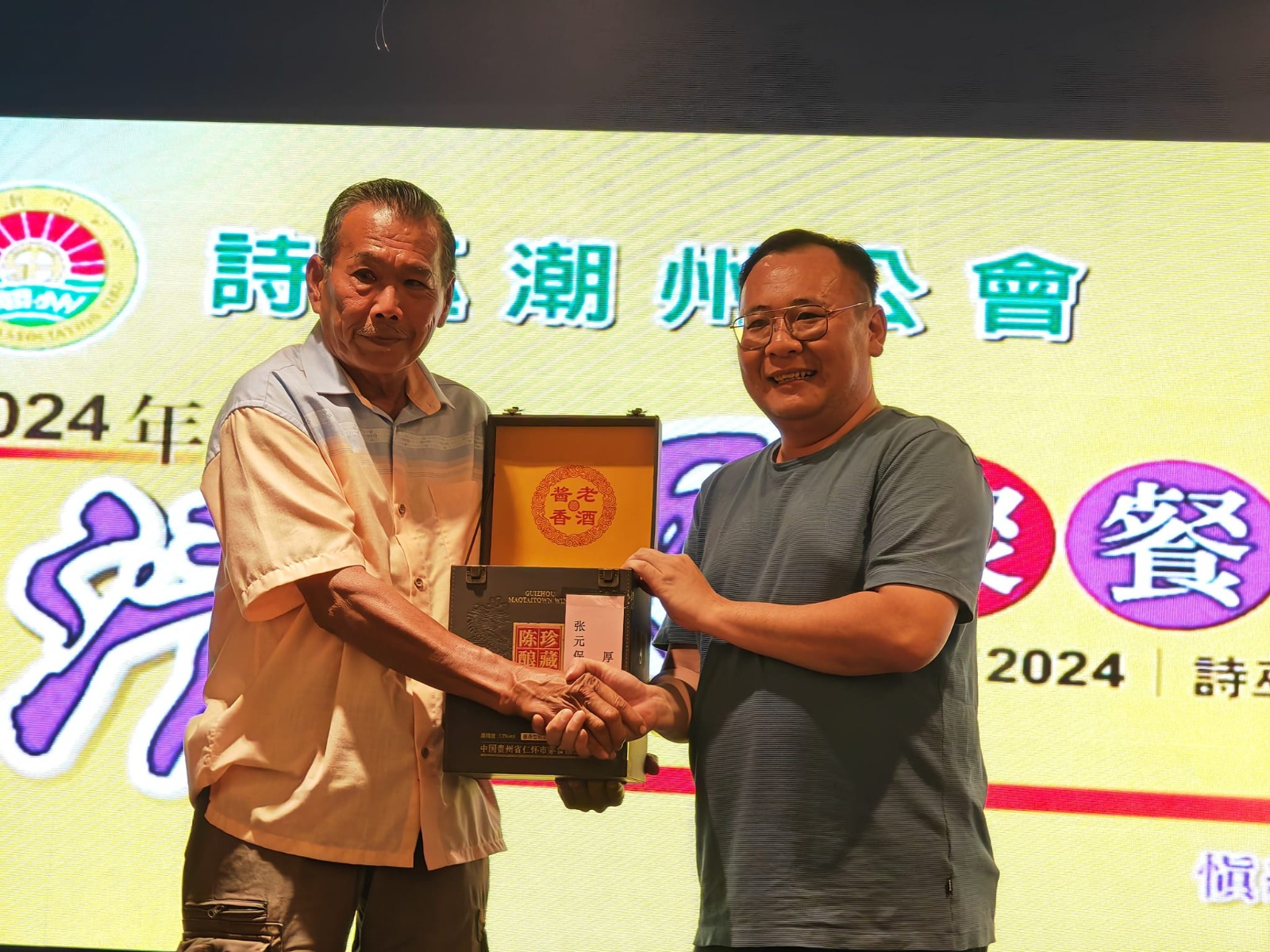 嘉宾移交酒予诗巫嘉应同乡会主席梁庆铭。