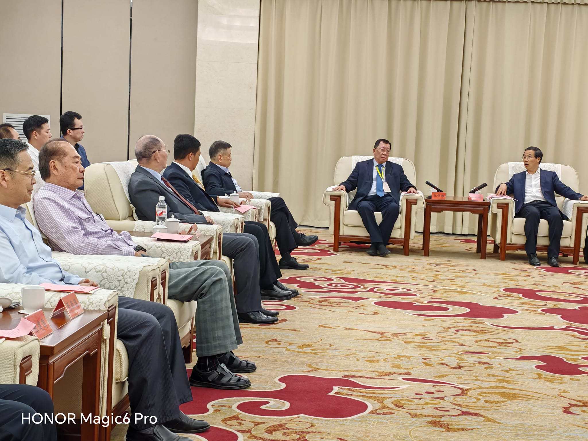 濮阳市委书记万正峰(右)在濮阳迎宾馆会见参加2024濮阳张姓文化节的海内外客商。前排左二起为马来西亚常青集团执行董事张建卿、澳洲的张宪舫、新加坡的张学彬、台湾的廖万隆、印尼中华总商会主席张锦雄。