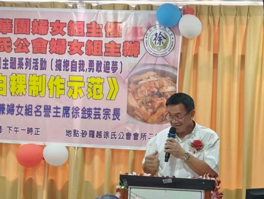 严学德今午在由诗巫省华团妇女组主催,砂拉越徐氏公会妇女组主办“传统白粿制作示范”致辞时说,白粿在华人社会承载着跨越时代的象征意义。在过去白粿象征的是生活的根本。它以米为本,代表勤俭、踏实与对土地的依靠。在年节与祭祖中出现,象征敬祖慎终、家庭团圆与平安祝愿。由长辈亲手制作,也象征经验的传承与家风的延续。