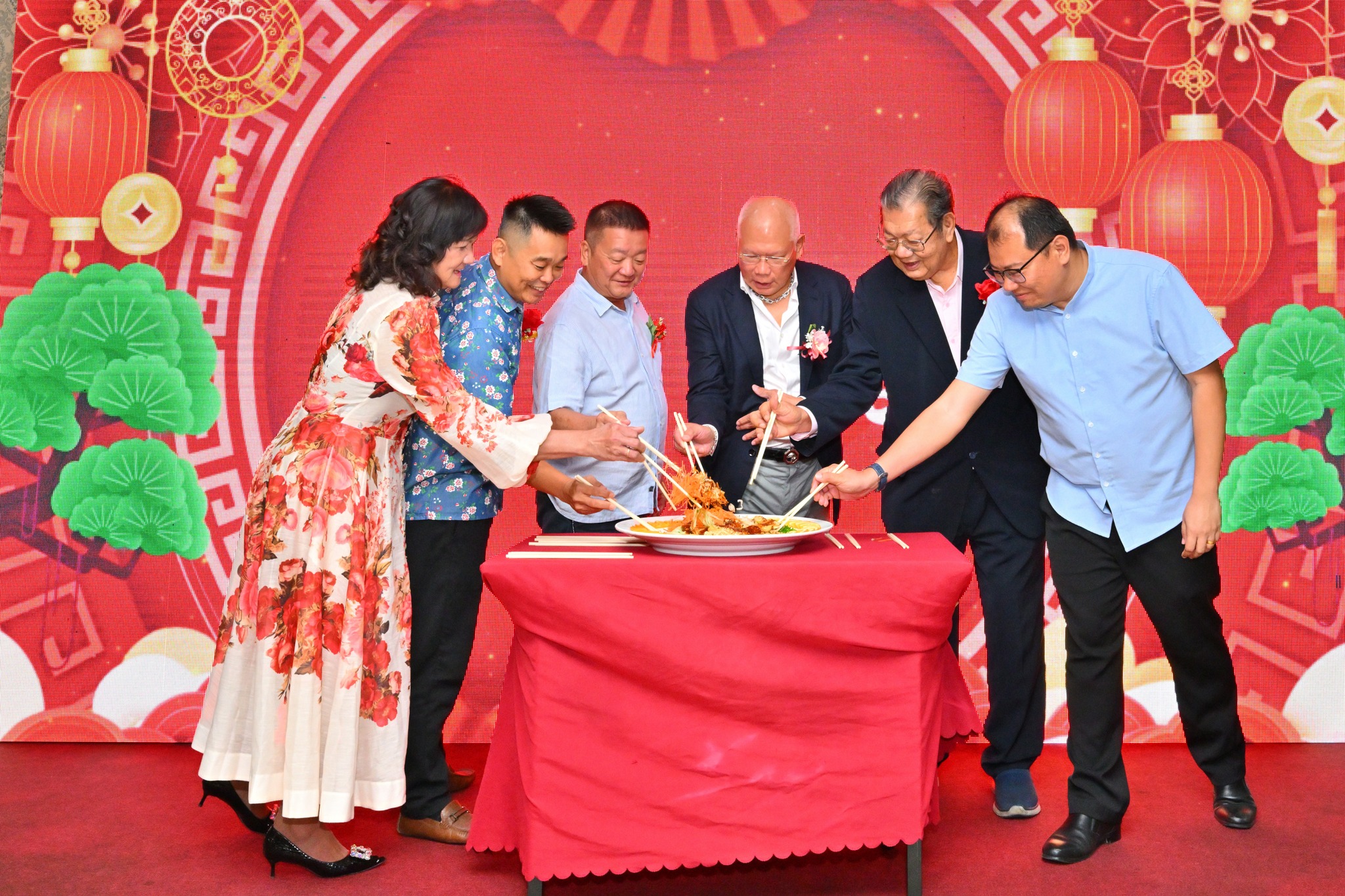 众嘉宾齐捞生。左及右分别为妇女组主任刘美娟及青年团团长刘运起。