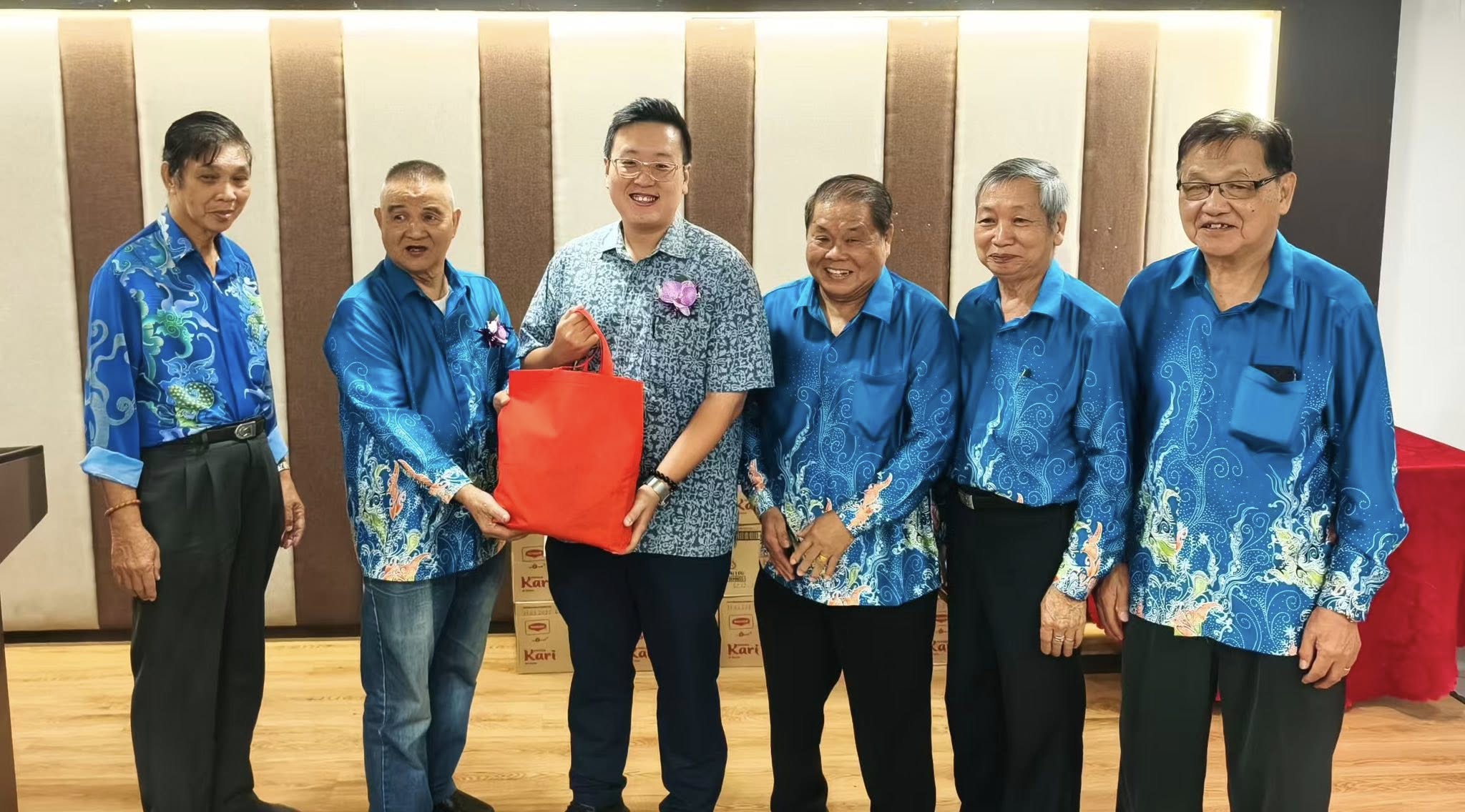 主席唐荣国(左2)赠送纪念品予拿督程明智副部长,由代表县议员刘可杰接领