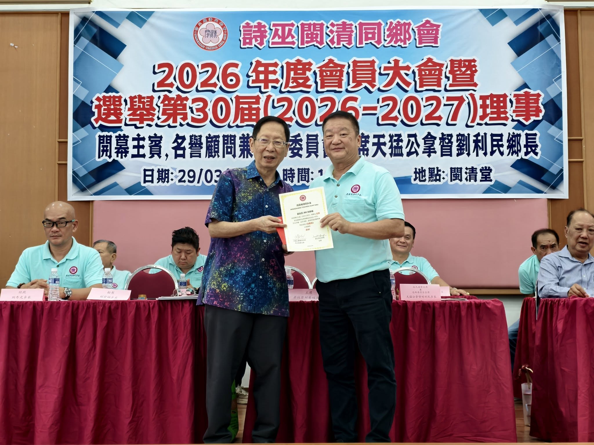 诗巫闽清同乡会【2026年度会员大会暨第30届(2026-2027)理事选举】于2026年3月29日该会顺利进行。