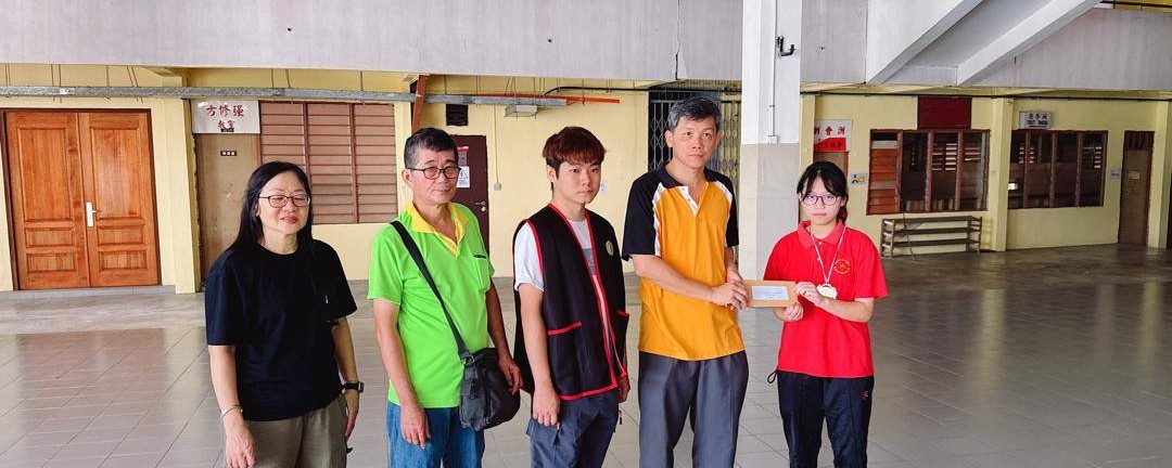 卓伟刚(右2)颁发中学女子组冠军奖金给詹锦雁