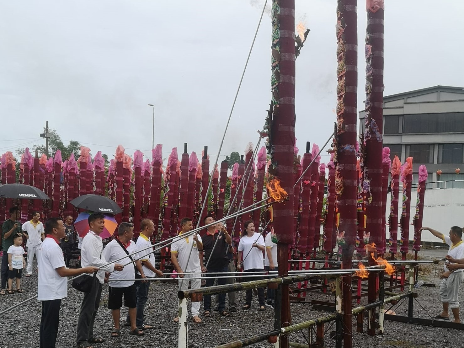 配合2024甲辰年二霸王公千秋圣诞庆典,诗巫凤凰山二霸王公庙于4月11日(星期四)早在庙内进行九献礼和祭拜仪式,之后移步到庙外点燃龙香。