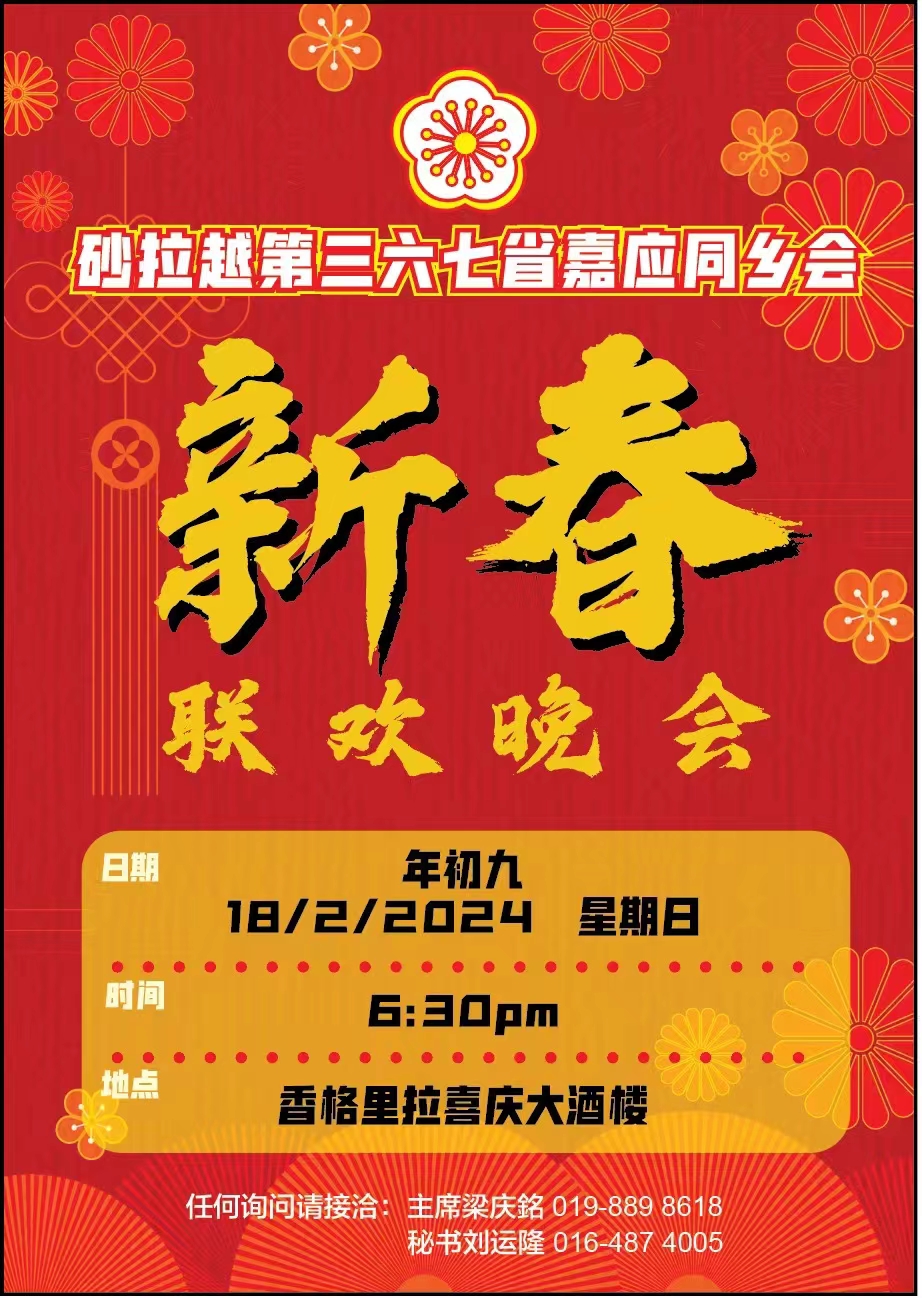 诗巫潮州公会与诗巫潮州社区发展及安全委员会于2月11日(星期日,年初二)下午2时在红新月会诗巫区会会所大礼堂联办甲辰龙年(2024 年)新春大团拜、颁发会员子女教育奖励金暨青年团学术赛奖。