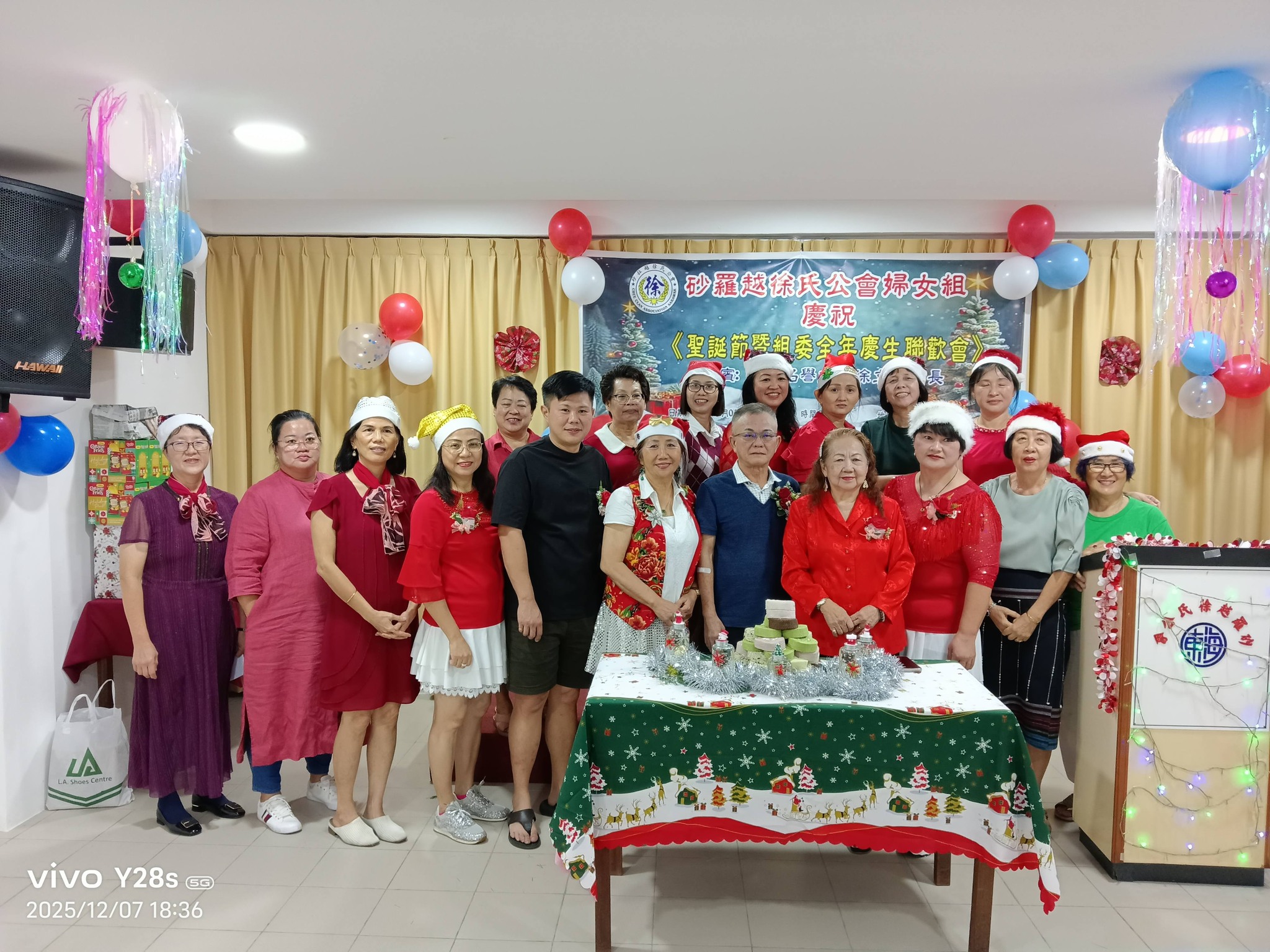 砂拉越徐氏公会妇女组庆祝圣诞节暨组委会全年庆生联欢会。与会嘉宾有妇女组主任徐立燕、该会主席兼妇女组名誉主席徐铋芸、名誉主席徐立耀、青年团团长徐传信、筹备会主席吴庆珠。