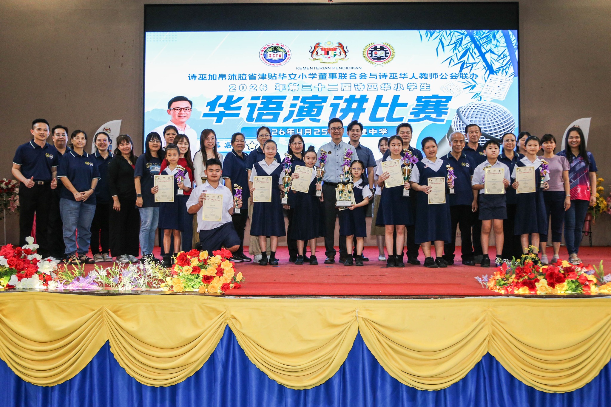 由诗巫加帛沐胶省津贴华文小学董事联合会与诗巫华人教师公会联办的2026年第32届诗巫华小学生华语演讲比赛圆满落幕,成绩出炉,由敦化小学荣获冠军。