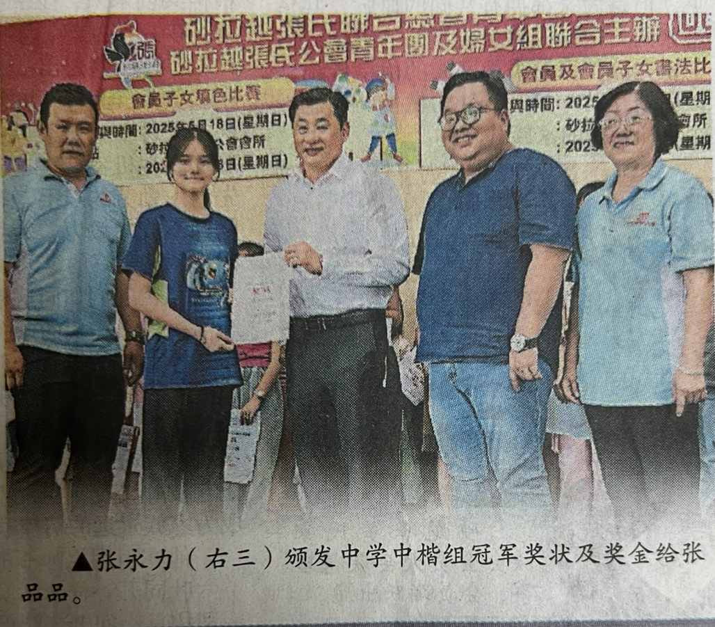 砂拉越张氏联合总会青年图主備,砂拉越张氏公会青年团及妇女组联合主办的会员及会员子女书法比赛成绩出炉。