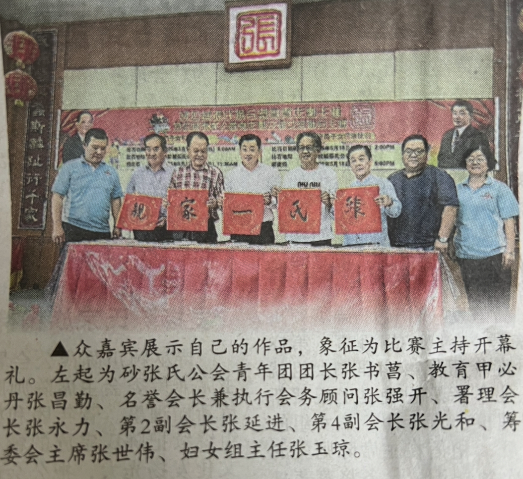 由砂拉越张氏联合总会青年团主催,砂拉越张氏公会青年团及妇女组主办之【會員及會員子女書法比賽】于5月18日下午2时在砂拉越张氏公会会所举行。