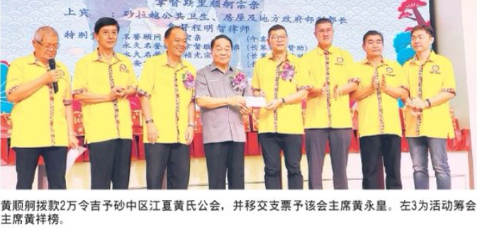 黄顺舸是以主宾身份出席砂中区江夏黄氏公会创会65周年、青年团41周年及妇女组31周年庆暨敬老会,作出以上勉励,并於会上带来拨款2万令吉好消息,同时进行了移交。