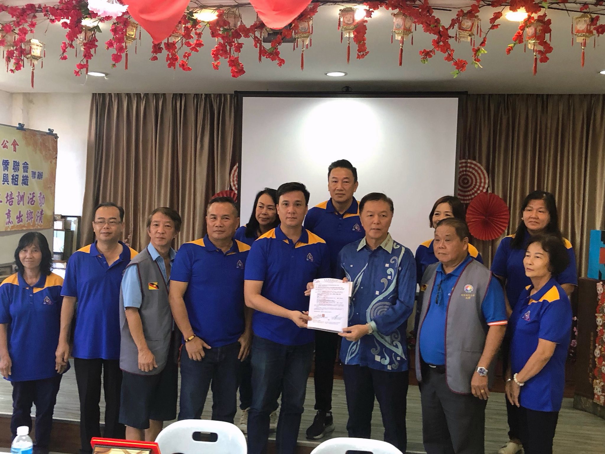 诗巫广惠肇公会邀请马广联会及属下会馆委派代表参加该会在12月6日和7日举办的创会70周年庆典兼砂广惠肇之夜活动。并由筹备会主席赵柏全(前排左5)代表移交邀请函予马广联会署理总会长拿督陈治年。後排左2为广惠肇公会主席容苞莱。