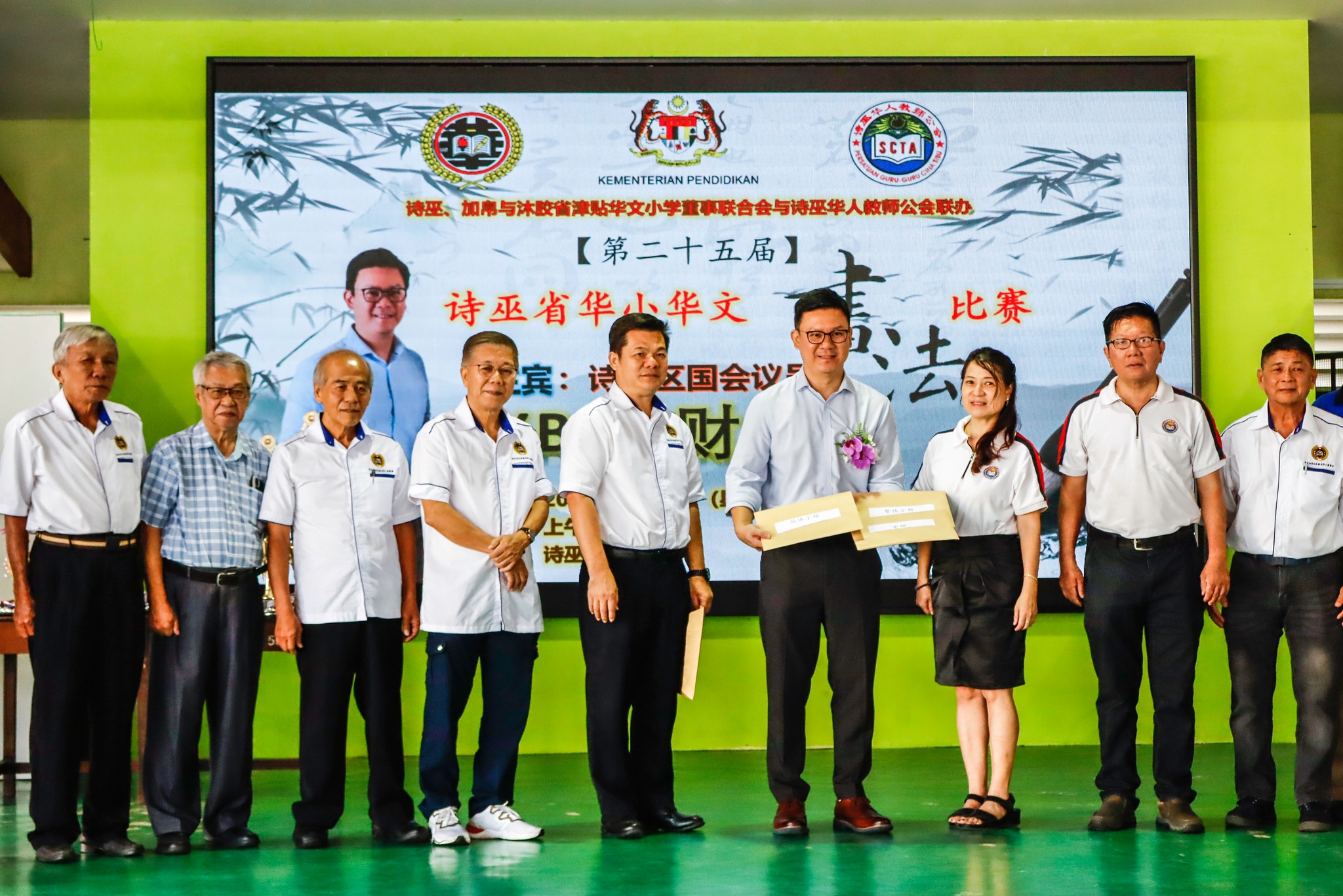 诗巫加帛沐胶省津贴华小董联会与诗巫华人教师公会,联办2025年第25届诗巫,加帛,沐胶省华小学生华文书法比赛,今早告四满落幕,华裔组中档及小楷冠军分别由敦化小学的刘执仙及圣心华小的黄日禧夺得。