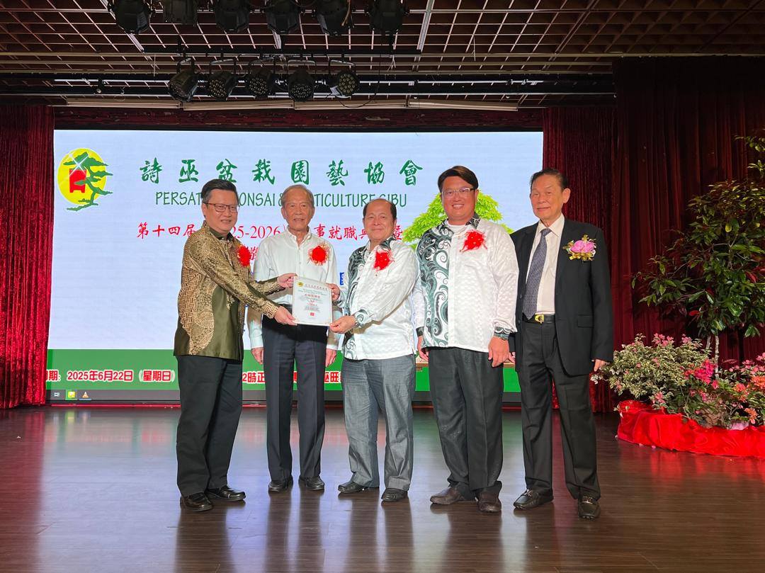 诗巫盆栽园艺协会第14届理事就职典礼暨敬老会午宴主宾丹斯里张仕国希望诗巫盆栽园艺协会继续发挥影响力,不仅在园艺领域发光发热,也在社区建设、人文精神与代际和谐中,扮演更积极的角色。