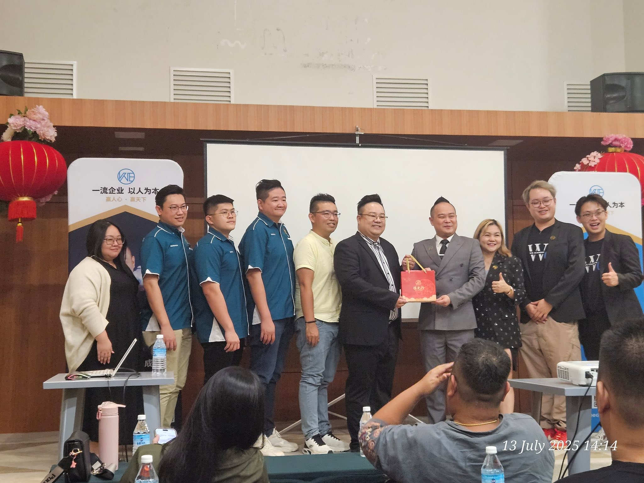 筹备会主席张延隆(左6)赠送纪念予讲师杨凯峰(右4)