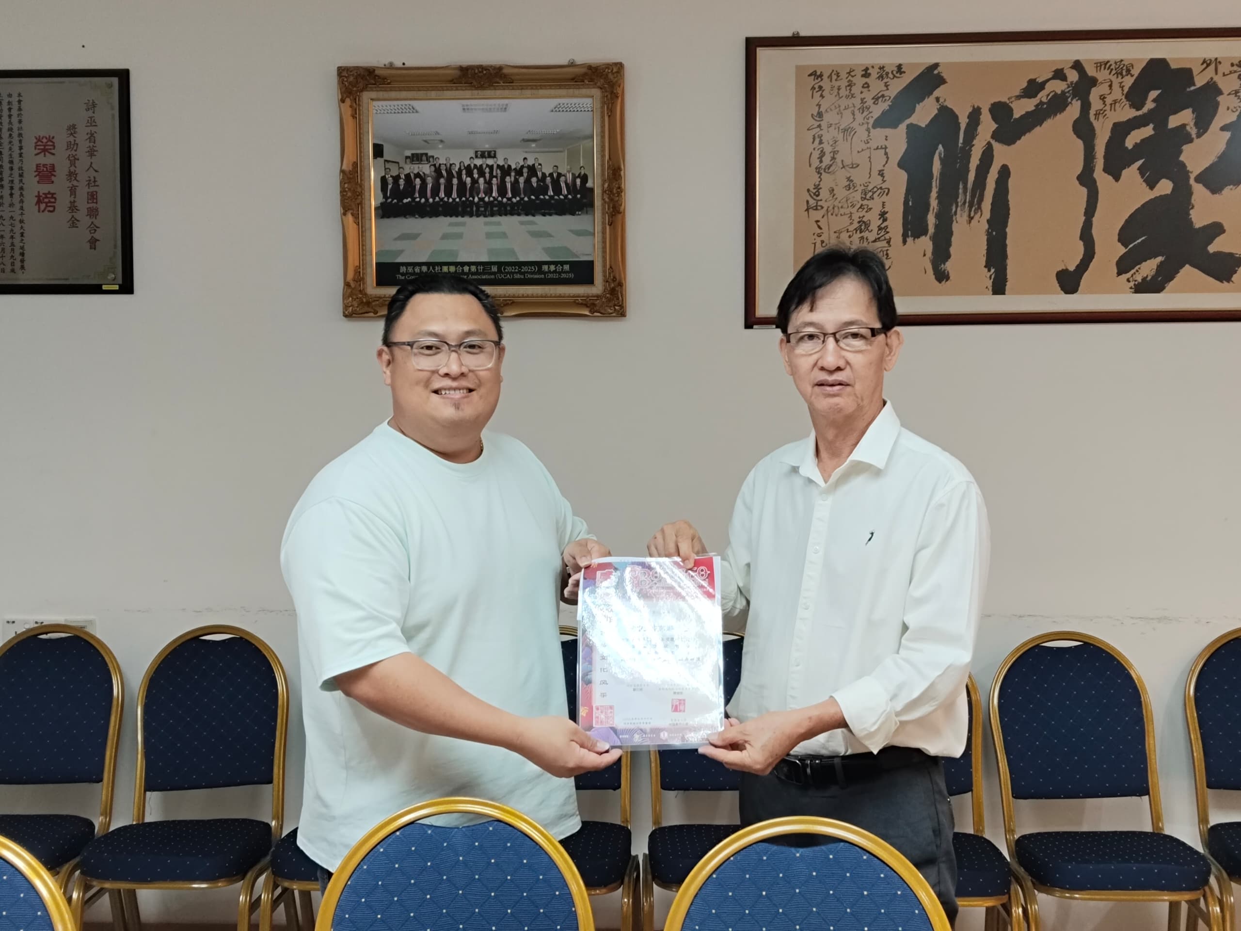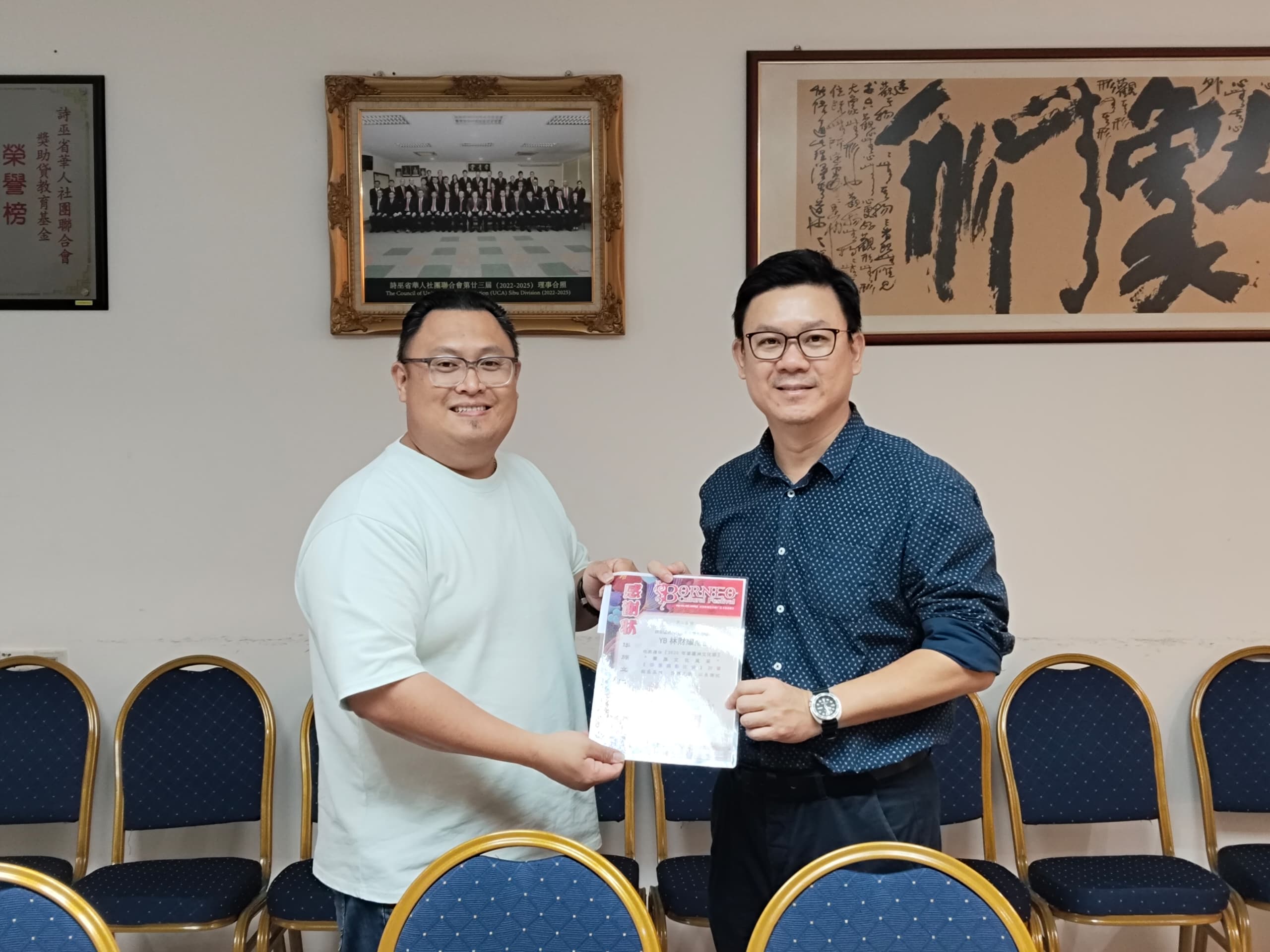 基金组主任兼筹备会主席尹士华市议员赠送感谢状予评审老师诗巫区国会议员兼本会名誉顾问YB林财耀