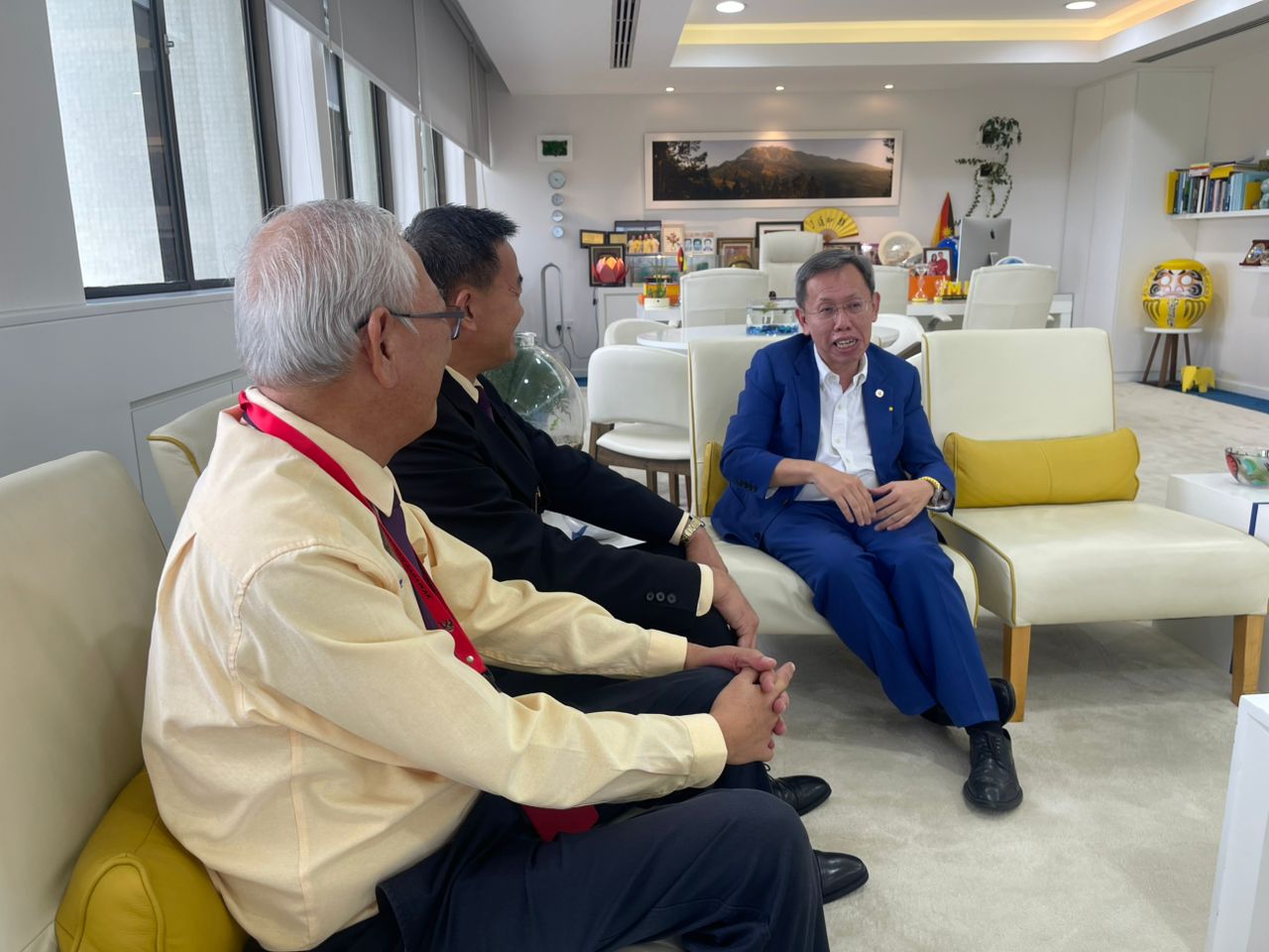 继拜访中国总领事馆总领事邢伟平阁下后,会长严学德与理事们于下午1时30分转赴砂拉越副总理办公室 ,礼貌拜访副总理暨公共卫生、房屋与地方政府部长 YB 拿督阿玛沈桂贤医生 ,会谈中移交邀请函,邀请沈副总理出席担任晚宴主宾。