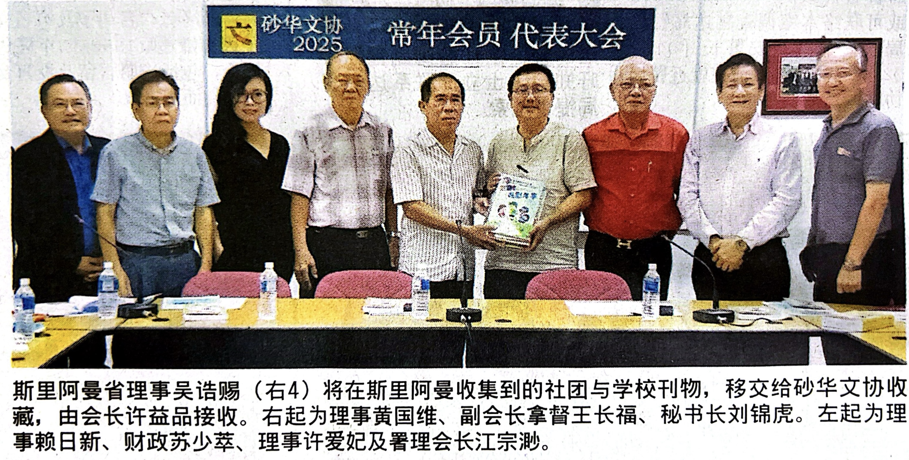 他说,在资料搜集方面,文协也请求各省代表及理事给予协助,在当地帮忙搜集砂拉越出版的书刊、族谱以交给文协保存,也希望大家能在各省华总大会,将讯息传给会员团体,希望在出版书刊时,能主动赠送两册供文协收藏。