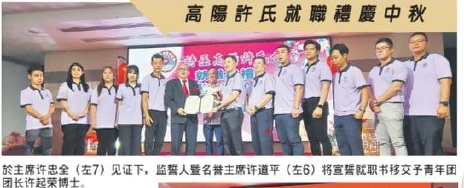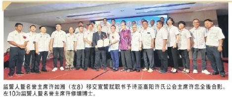 “许氏公会自创立以来,秉持宗亲互助、敦亲睦族的精神,推动教育、关怀弱小、服务社会,已成为宗族的依靠和地方的力量。如今公会的新届领导上任,意味著火炬传递、责任延续,你们的肩头,不只是族亲的期望,更是社会对传统组织能否焕发新价值的考验。”