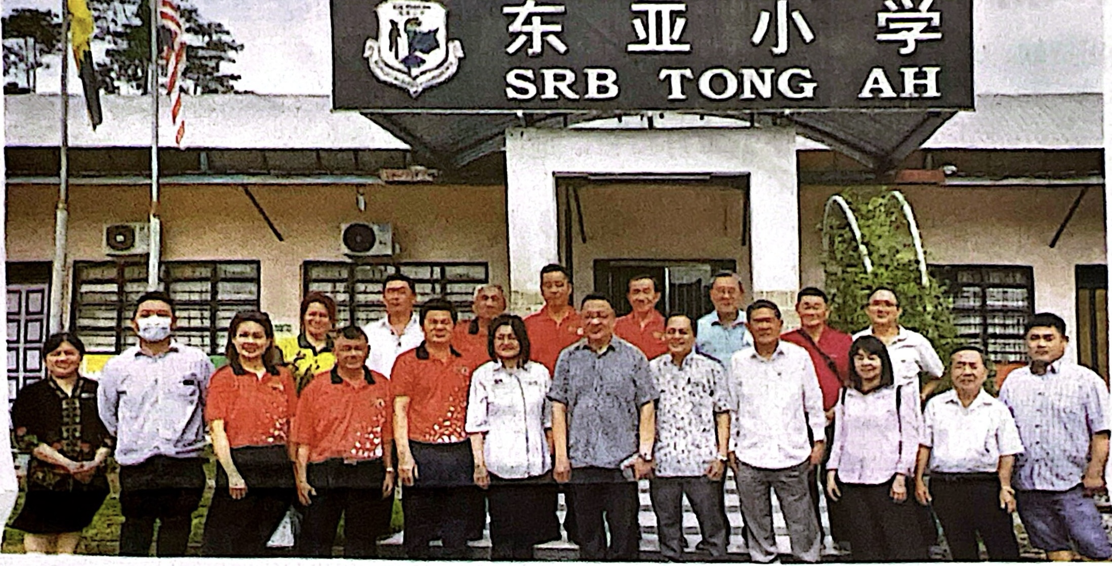一行人在拜访东亚小学时合影。前排左2为校长许吉开。有5起为董事长陈化全、拿督蔡文铎律师、督学郑珪琽及陈素明。