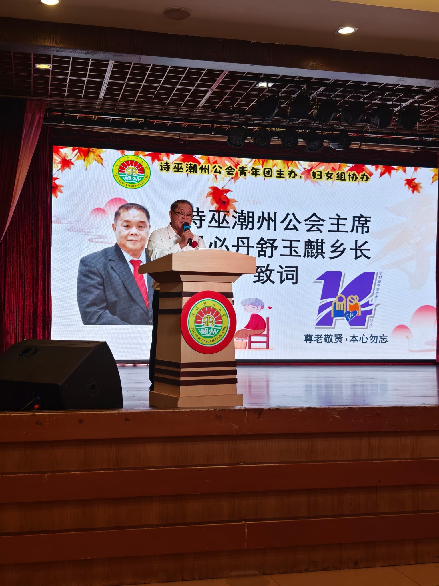 “过去每一位长辈的辛劳与付出,为家庭打下了稳固基础,也为诗巫与砂拉越的发展作出了贡献。你们的人生经验、智慧与坚持,是年轻一代最珍贵的财富。‘家有一老,如有一宝’。在潮州文化里,更是强调孝义传家、尊老爱幼。”