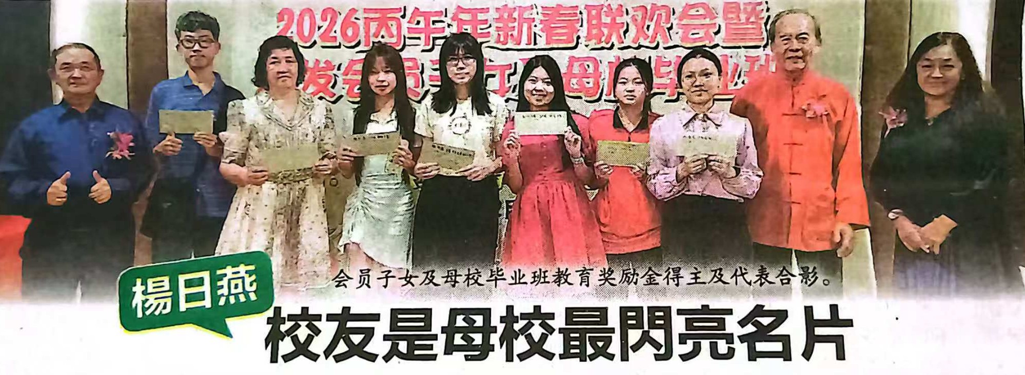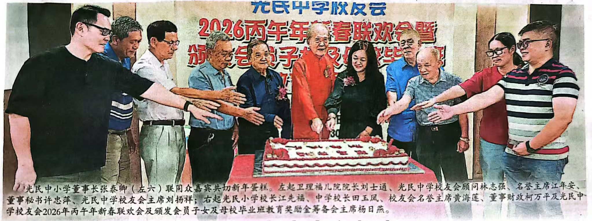 也是光民中学校友会副主席的杨日燕在光民中学校友会2026年丙午年新春联欢会及颁发会员子女及母校毕业班教育奖励金仪式上致词时表示该盛会有三大意义,一是庆祝新春,传承文化,也为校友们提供共叙同窗情的平台。