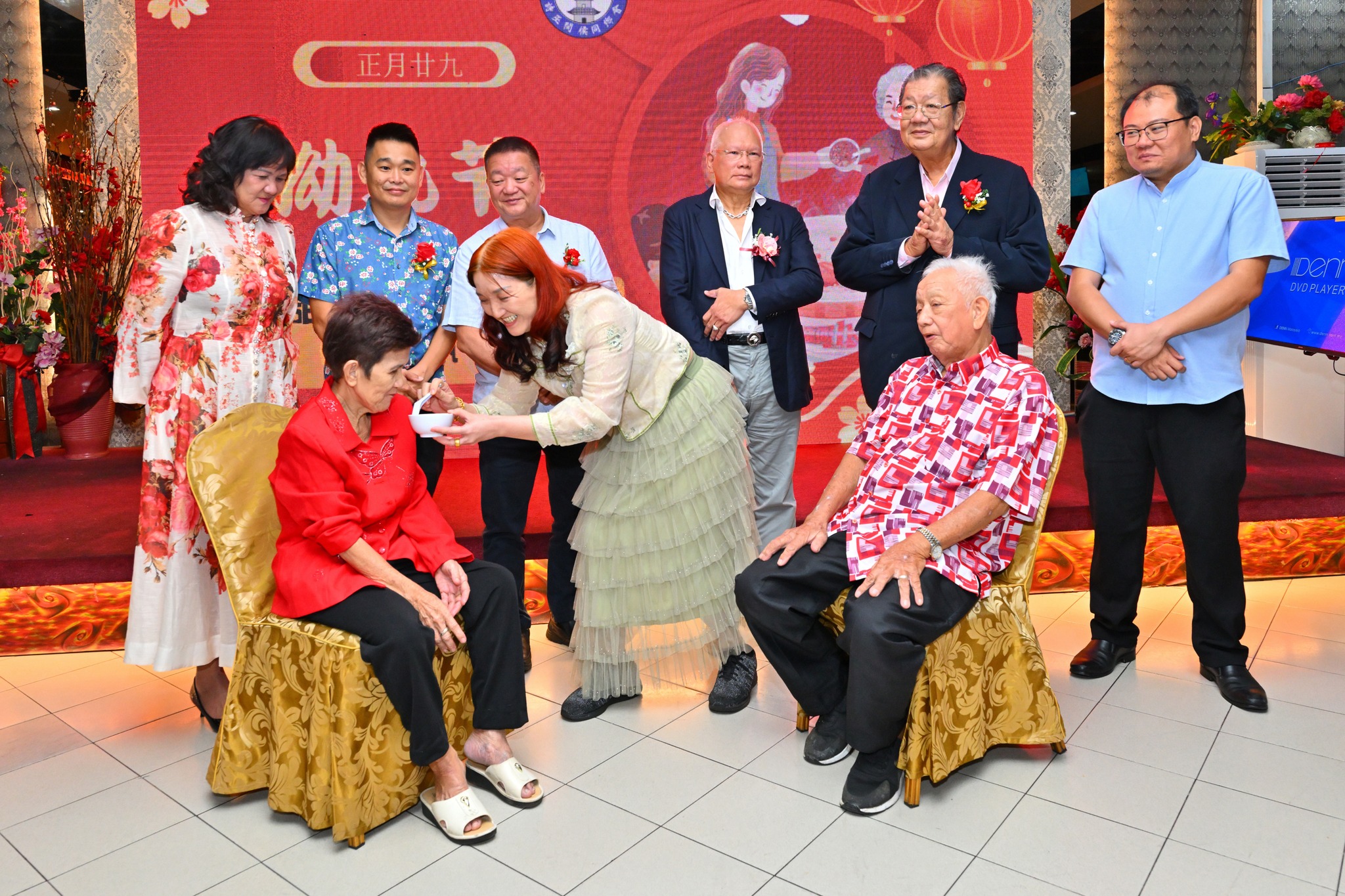 农历正月二十九的“拗九节”,是福州人传统节日,承载着对父母的感恩与对长辈的敬爱。诗巫闽侯同乡会为传承孝亲敬老、关爱父母的优良传统,在欢庆新春之际特别举办拗九节庆祝活动,别具意义。图为女儿刘运相(前中)亲手为母亲池赛娇(前左)及父亲刘锦明(前右)喂上一口甜入心坎的“拗九粥”后更为父母捶背、洗脚,以实际行动表达孝敬与感恩之情,场面温馨。