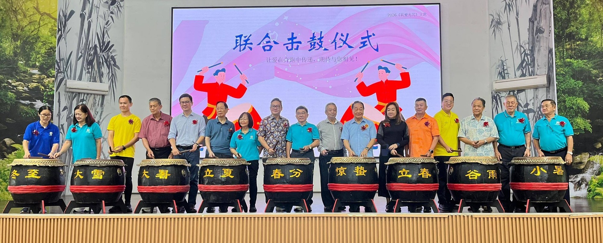 众嘉宾为“2026我爱光民义跑”主持联合击鼓仪式。左起光民中学校长田玉凤、顾问林恒实的代表杨日燕董事、拿督黄国惠的代表许鲁宾、顾问林志强、诗巫区国会议员林财耀、砂拉越华文独立中学董事会联合总会主席刘利民、总赞助人兼副董事长拿汀张世妃的代表张世訇、砂共卫生。房屋及地方政府部(公共卫生及房屋)副部长兼柏拉旺区议员程明智、“2026我爱光民义跑”筹备会主席兼光民中学校友会主席林兴旺、光民中小学董事长张泰卿的代表秘书长许忠萍、峇旺阿山区议员拿督斯里黄顺舸、拿督罗明华、署理主席拿督斯里孙忠成的代表甲必丹孙忠全董事、县议员刘可杰、副董事长黄祯光、财政柯万平及副董事长刘惠平的代表刘扬祥。