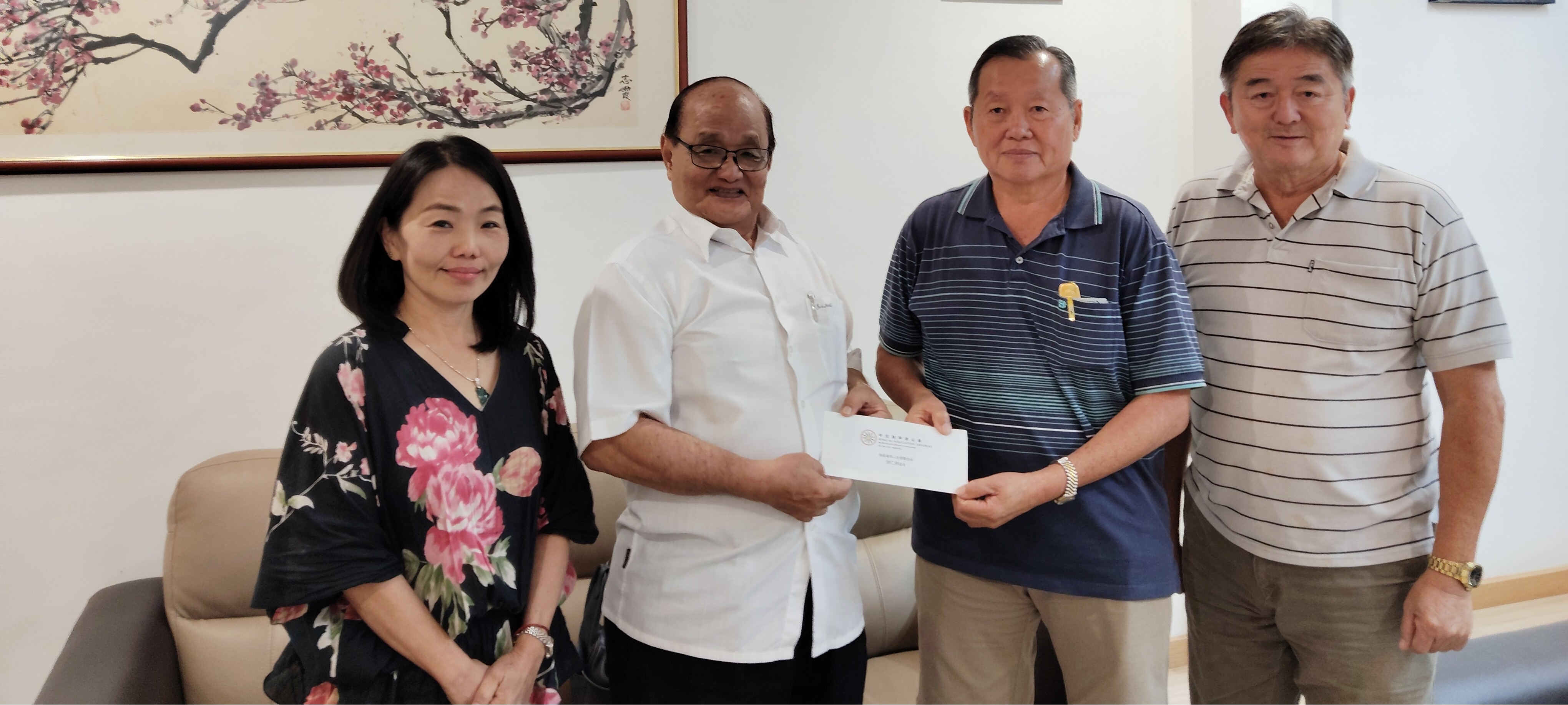 (左二)砂拉越宁德公会主席移交邀请函予(右二)诗巫省华团会长刘仁祥,(左一)为砂拉越宁德公会协助者王晶晶(右一)砂拉越宁德公会助理主席兼活动筹备会主席本固鲁陈则生