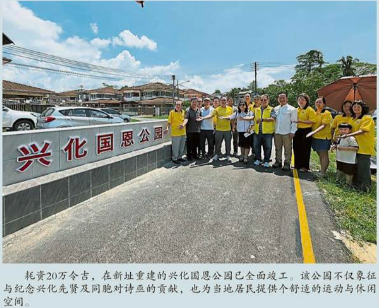 他表示,耗时6个月工程目前已完成,1992年建设,2026年重建的国恩公园在新址隆重落成,此举也表达对兴化属同胞先辈过去百年对诗巫的建设,文化传承等所做一切贡献表达感恩,国恩公园的建设是非常有意义的。