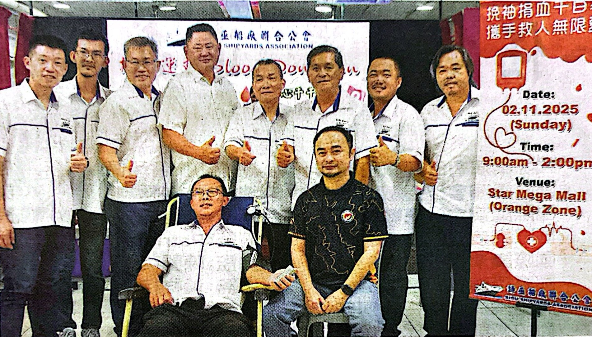 诗巫船厂联合公会於2025年11月2日(星期日)早上9時至下午2時,在大星购物中心举办常年捐血活动,会员与民众反应非常热烈,共有149人注册,103人成功捐血。此项活动获得会员属下员工、家属、亲友及公众,踊跃出席参与捐血活动,积极响应挽袖抢救生命的任务,共同努力响应社区福利健康贡献绵力。活动在主席丁华安的带领下,於上午9时开始进行至下午2时结束。