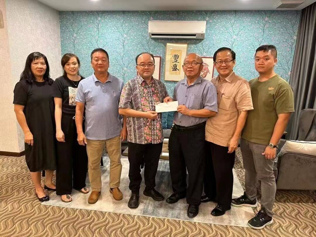 筹备会主席许道平(左4)将邀请函呈交予马福总会长拿督斯里刘为强绅士(右5)。右1及2马福副秘书长林唐锦伉俪,右3诗巫闽清同乡会秘书刘宜福,右4诗巫闽清同乡会主席刘恭福县议员,左1及2为马福秘书长刘锦虎伉俪,左3马福副会长兼砂福总会长甲必丹拿督刘思乐。