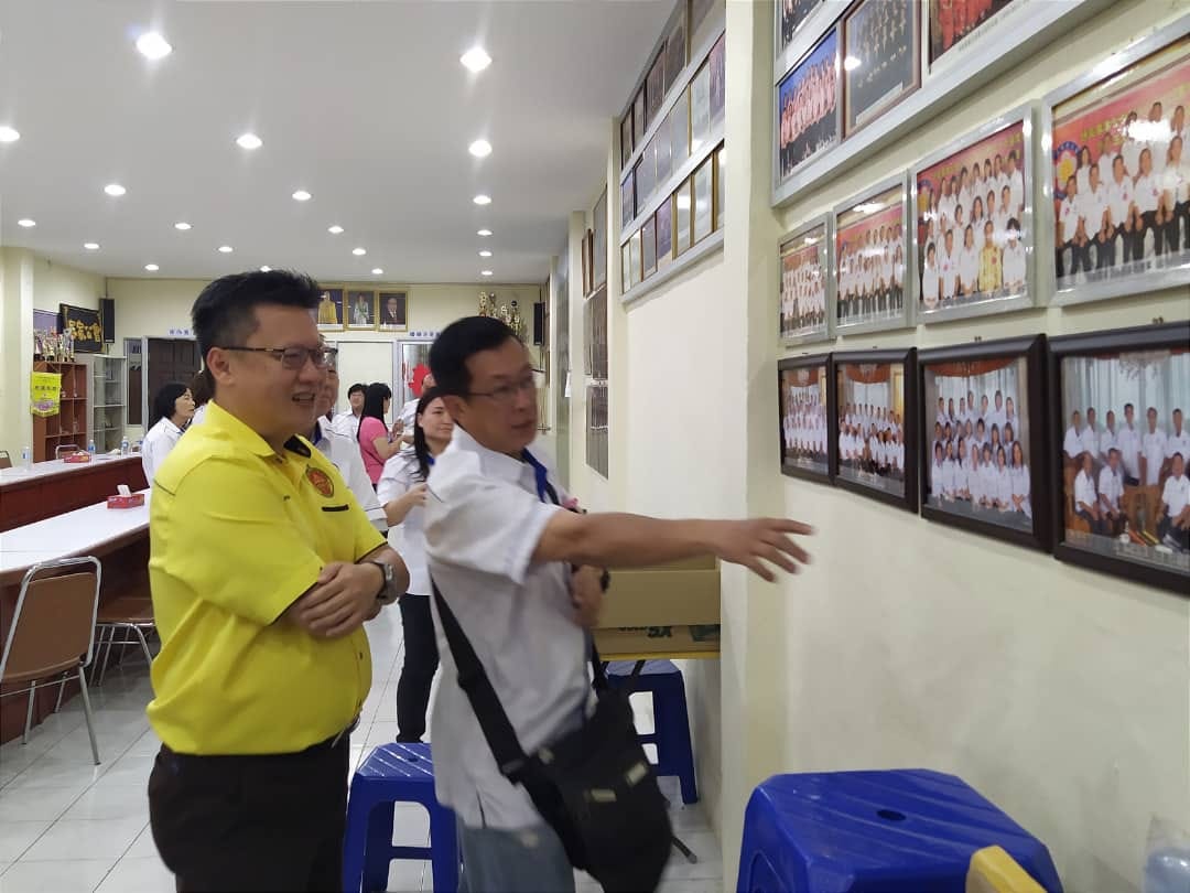 钱进一(右)参观诗巫客家公会会所。