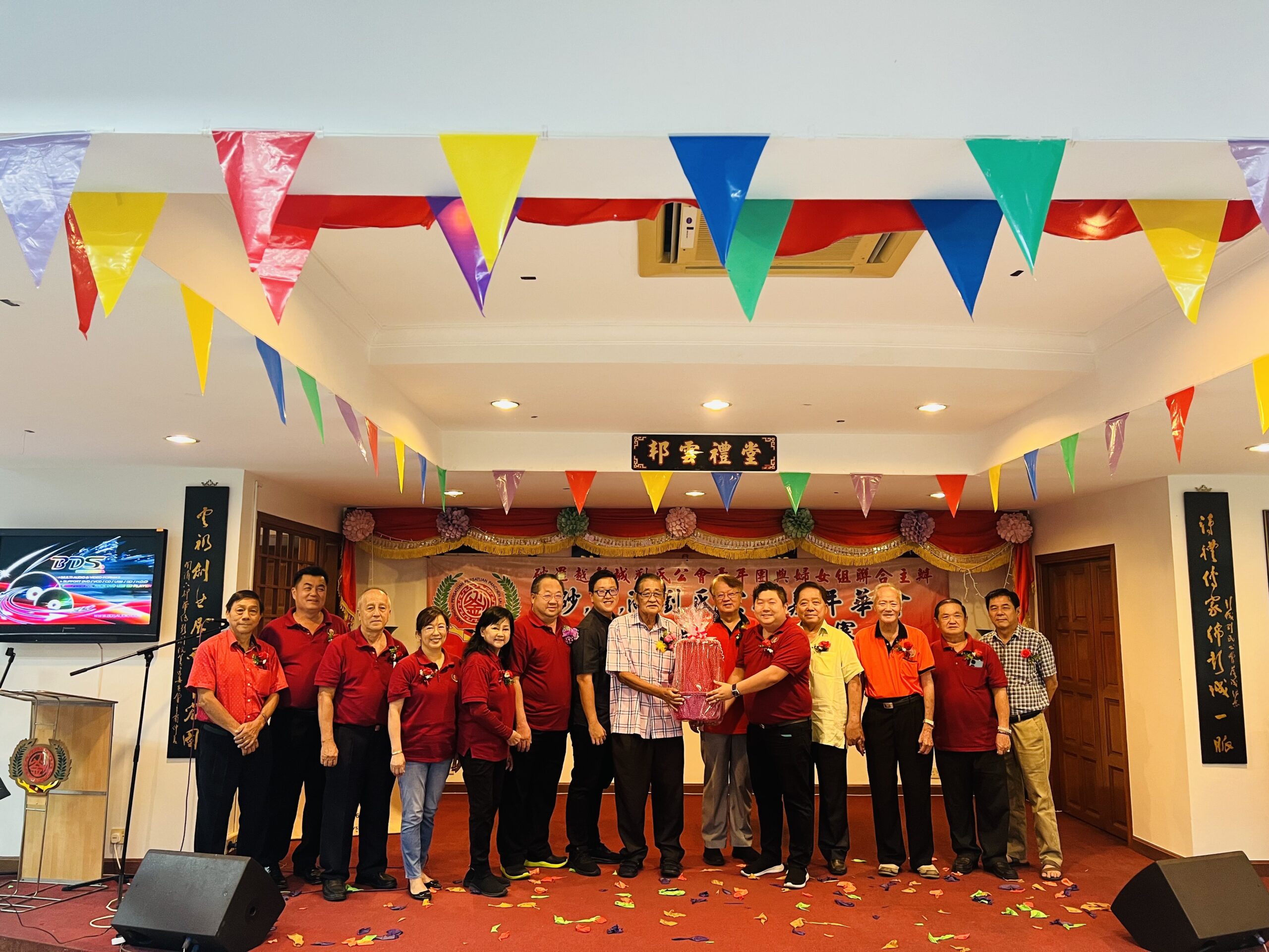 筹备会主席刘健瑯赠送纪念品予主宾兼署理会长甲必丹刘久生。