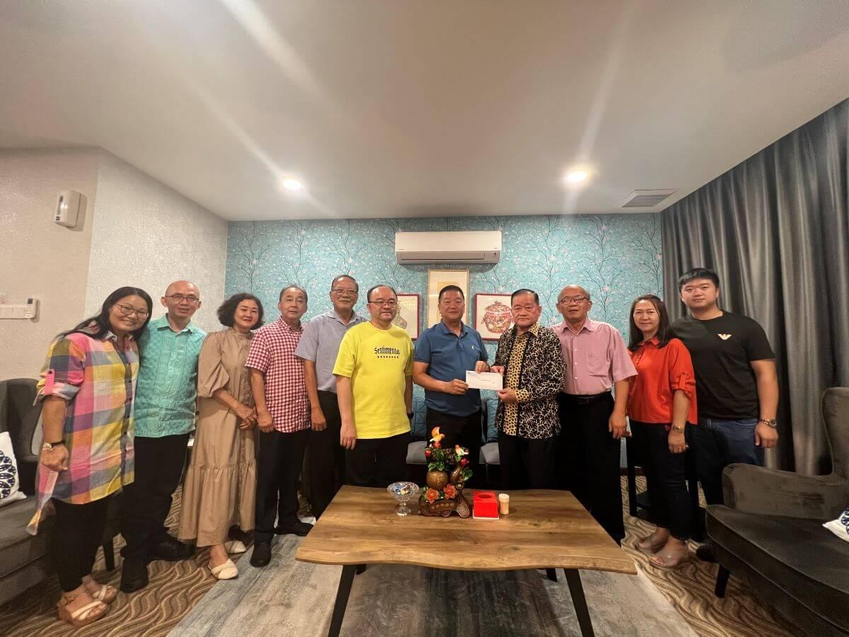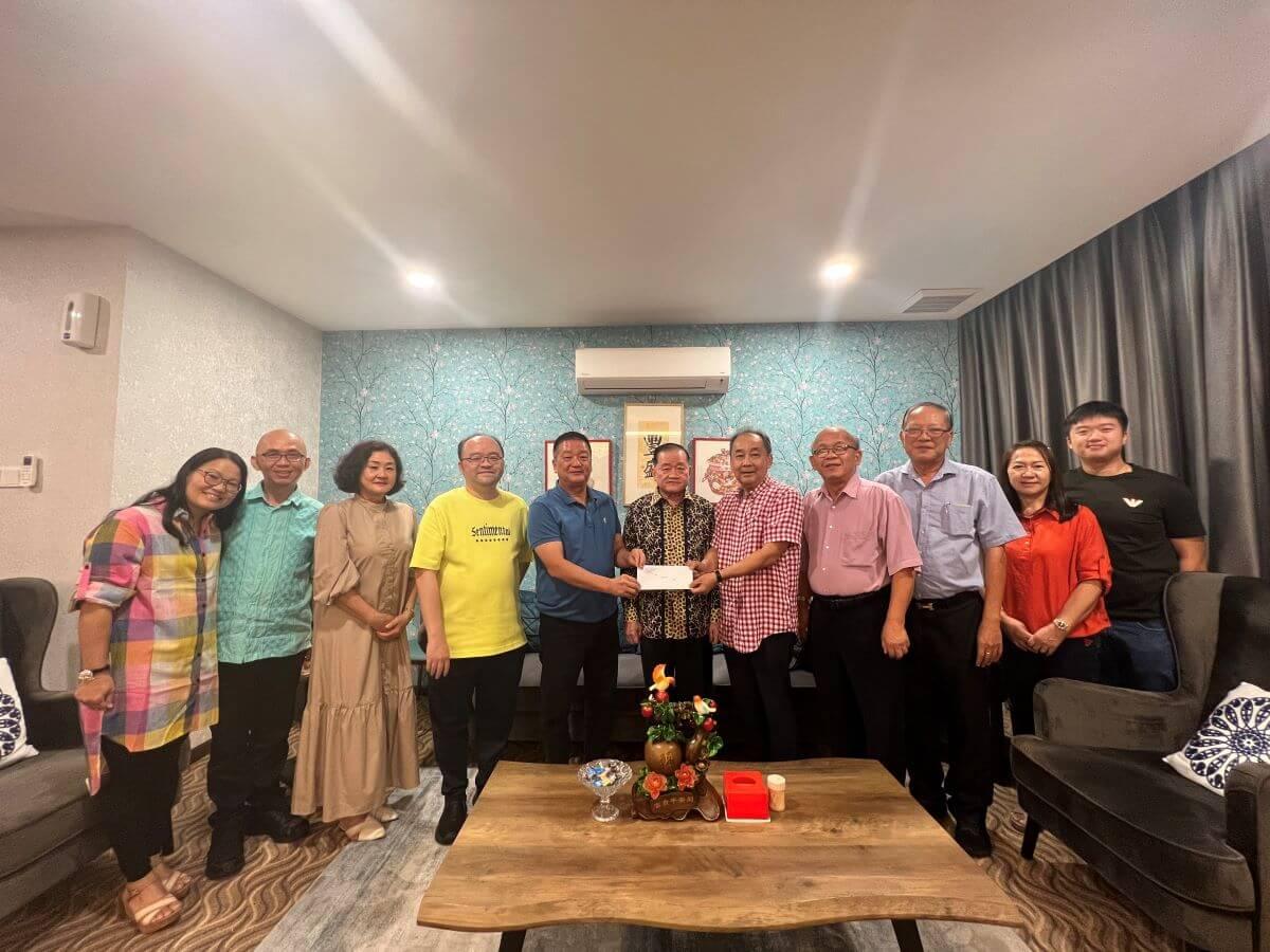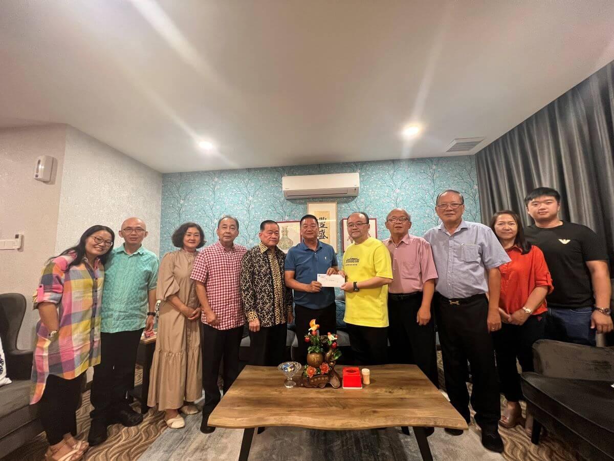 刘恭福(左5)将邀请函呈交予砂拉越福州乐龄(鹤龄)总会主席林唐锦(右5)。
