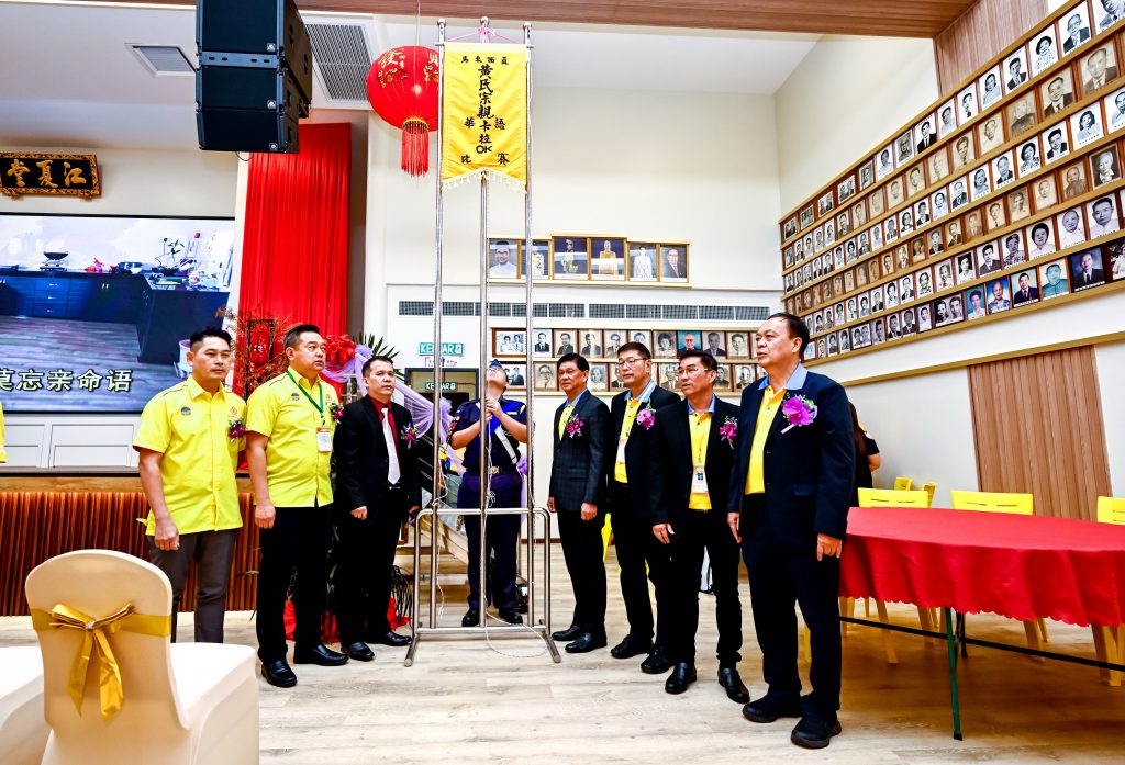 众嘉宾联合主持第21届全国黄氏宗亲宗嫂华语卡拉OK歌唱赛升旗礼。