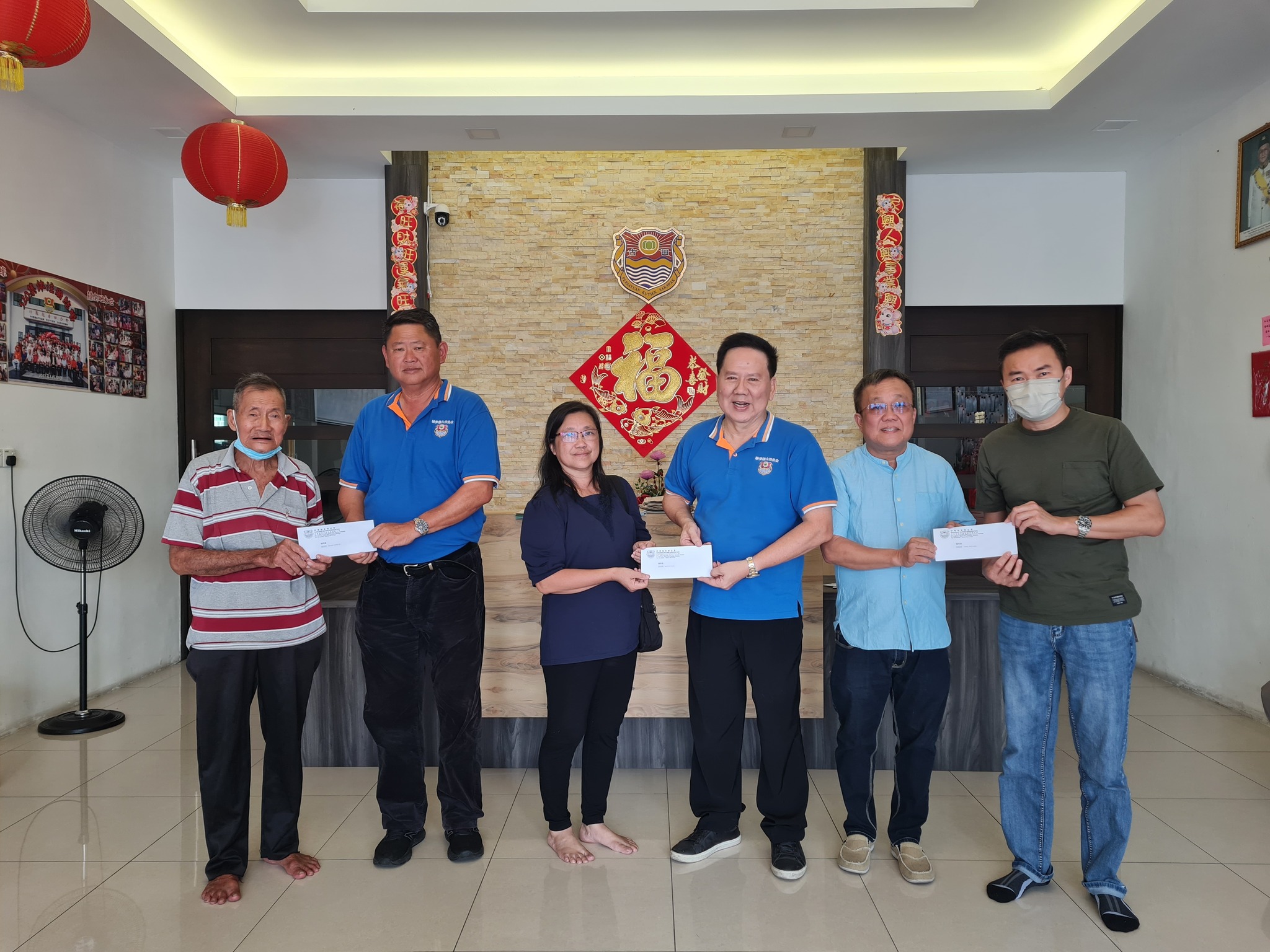 副主席本固鲁丁华谷(右)、福利组主任丁华安(右四)、秘书李善琼(左)及财政钱本富(左二)联合发放给受惠会员。