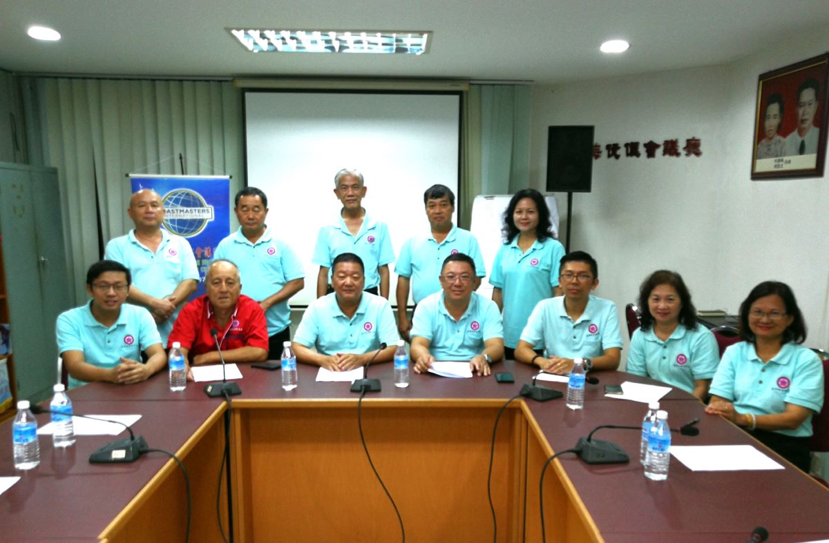 诗巫闽清同乡会福州话讲故事及演讲比赛筹委会成员于新闻发布会后合影。坐者左起为讲演会会长林原樟、乐龄组主任刘兴勇、主席刘恭福、財政兼筹委会主席许进潍、青年团团长张钧发、妇女组主任陈俏穎、副秘书陈秀凤。