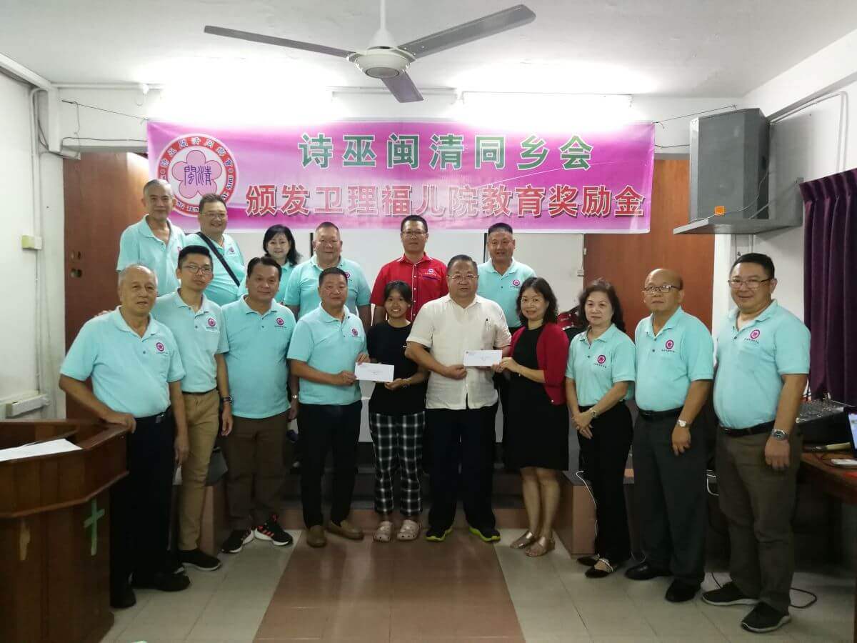 诗巫闽清同乡会于12月3日(星期日)探访卫理福儿院,同时颁发教育奖励金及大学助学金给院生,有18人获得教育奖励金及8人获得大学助学金,该会也赠送一台60吋电视机,并准备午餐与院生一起享用,促进交流。